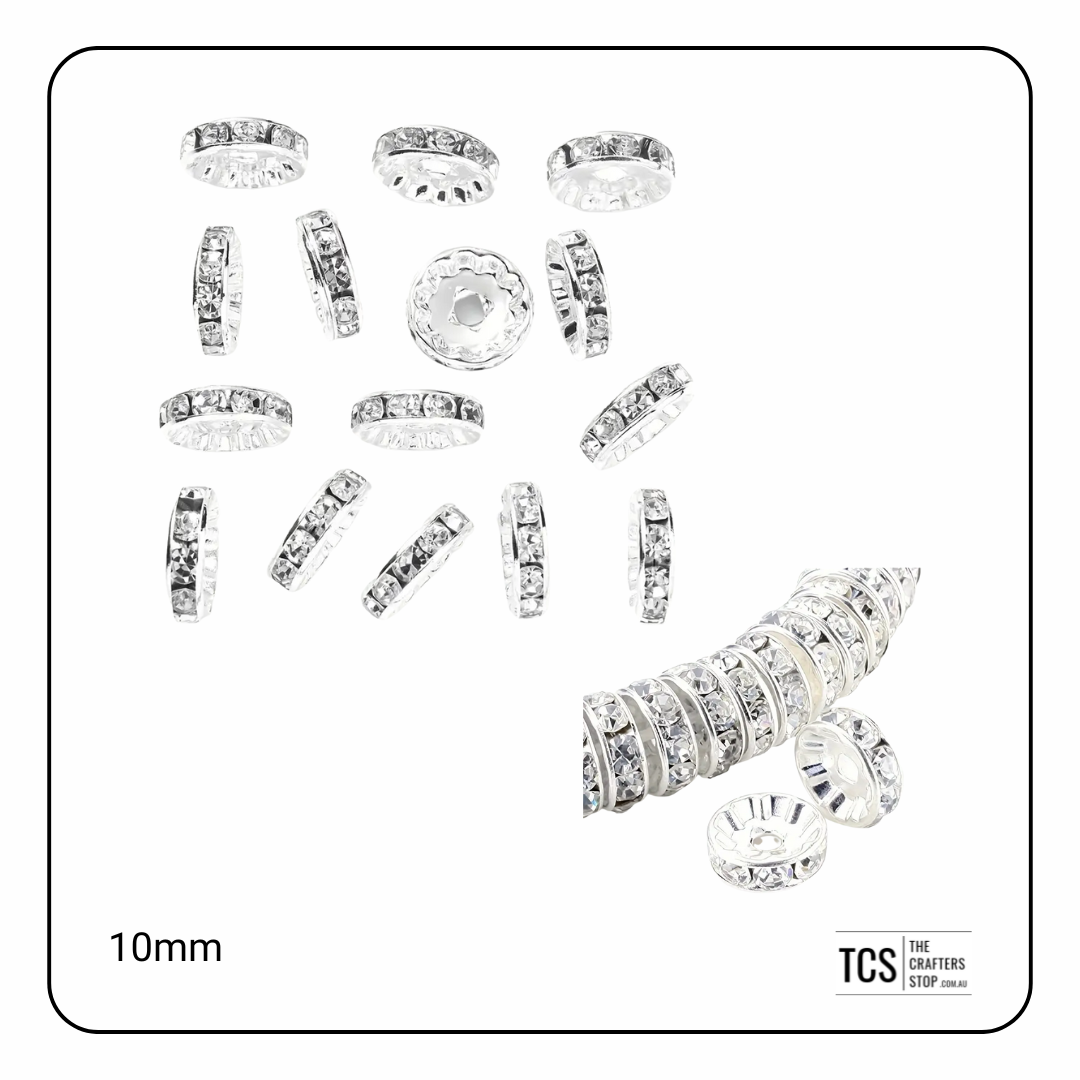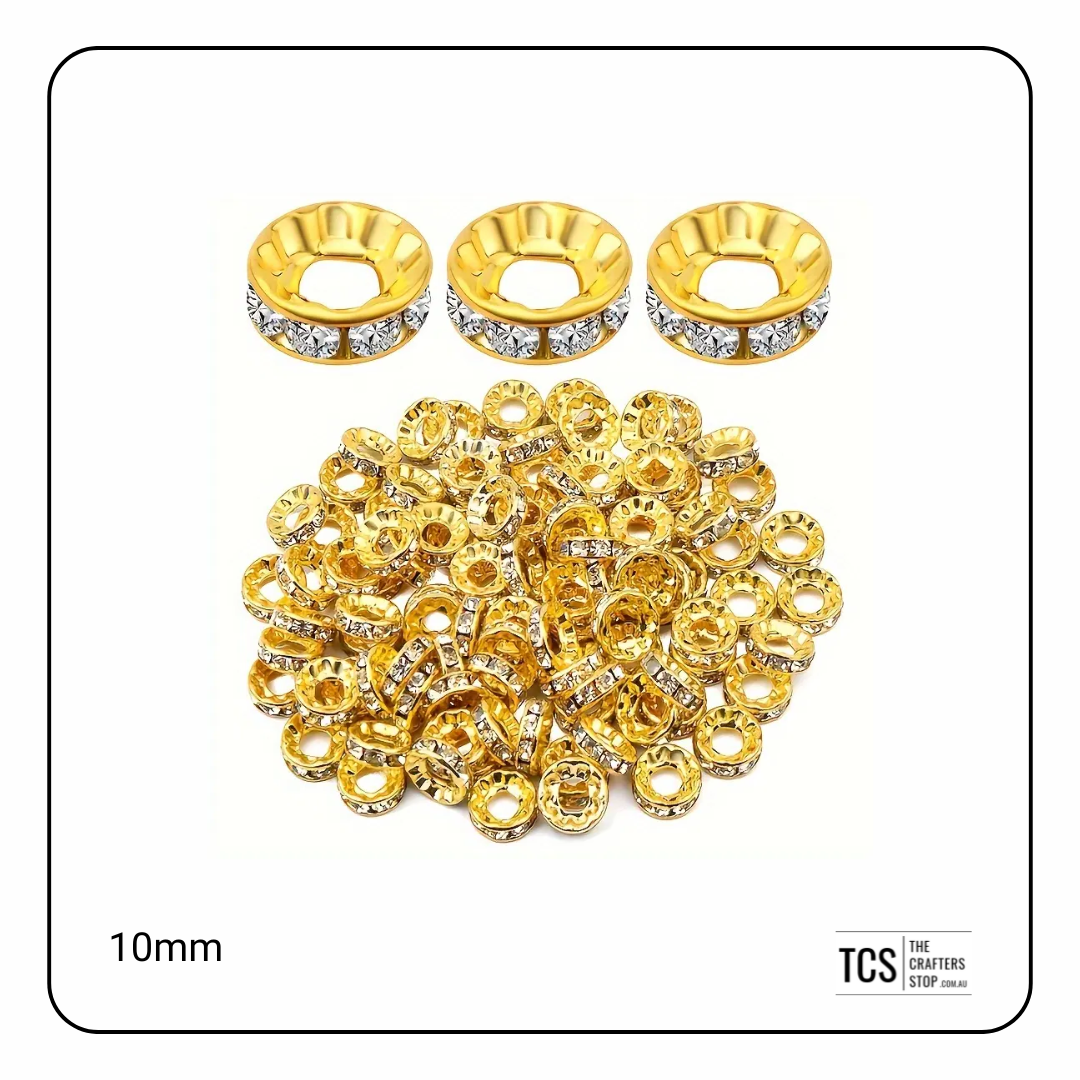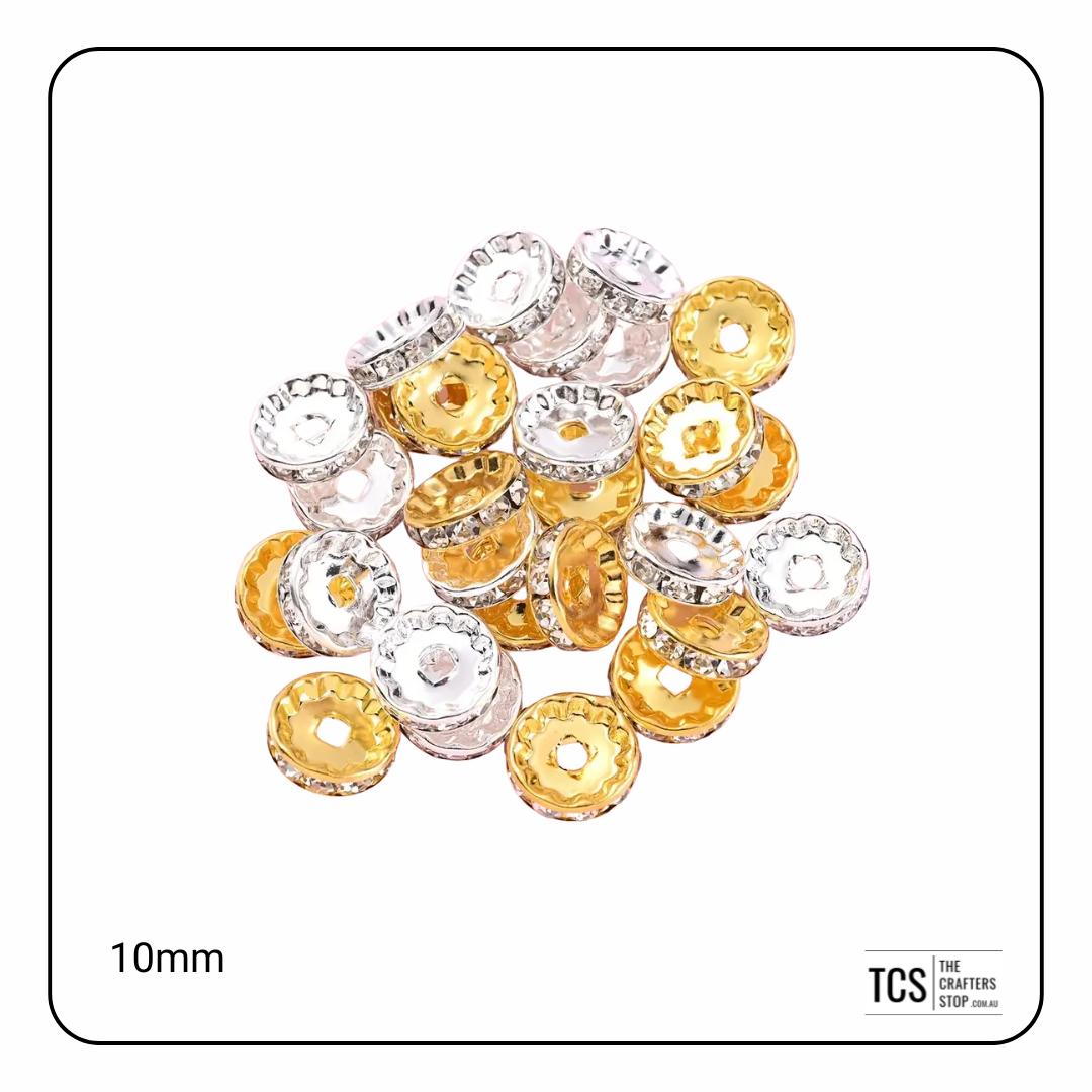 10mm Gold/Silver Rhinestone Metal Spacer Beads