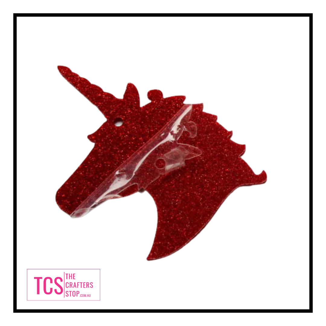 Oh!!!! How cute are these acrylic red glitter unicorn blanks? Make a number of personalised gifts with these cute unicorns from key chains or bag tags with an initial or name. Each blank includes a hole ready for you to attach hardware.