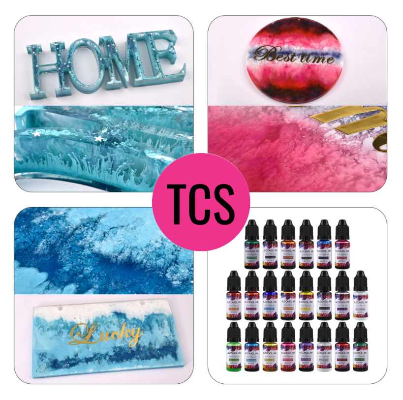 Alcohol Inks can be used in a variety of projects, from creating stunning free flowing techniques or use the inks in mixed media projects such as fabric dying, jewellery making, prints, stamps and on furniture.