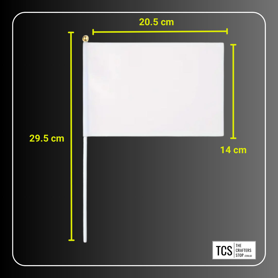 - Size: Pole Height: 29.5 cm. Flag 20.5 cm x 14 cm