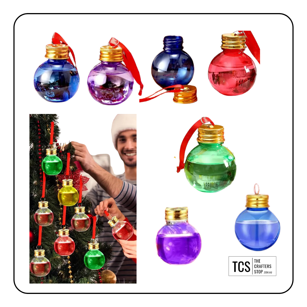 Discover these fantastic Fillable Baubles and add some festive flair to your Christmas decor. Fill with booze, juice, cocktails, or even homemade body wash for a fun surprise. Hang them on your tree and impress your guests. The clear design allows for endless possibilities - add an image, name, or saying for a personalized touch!