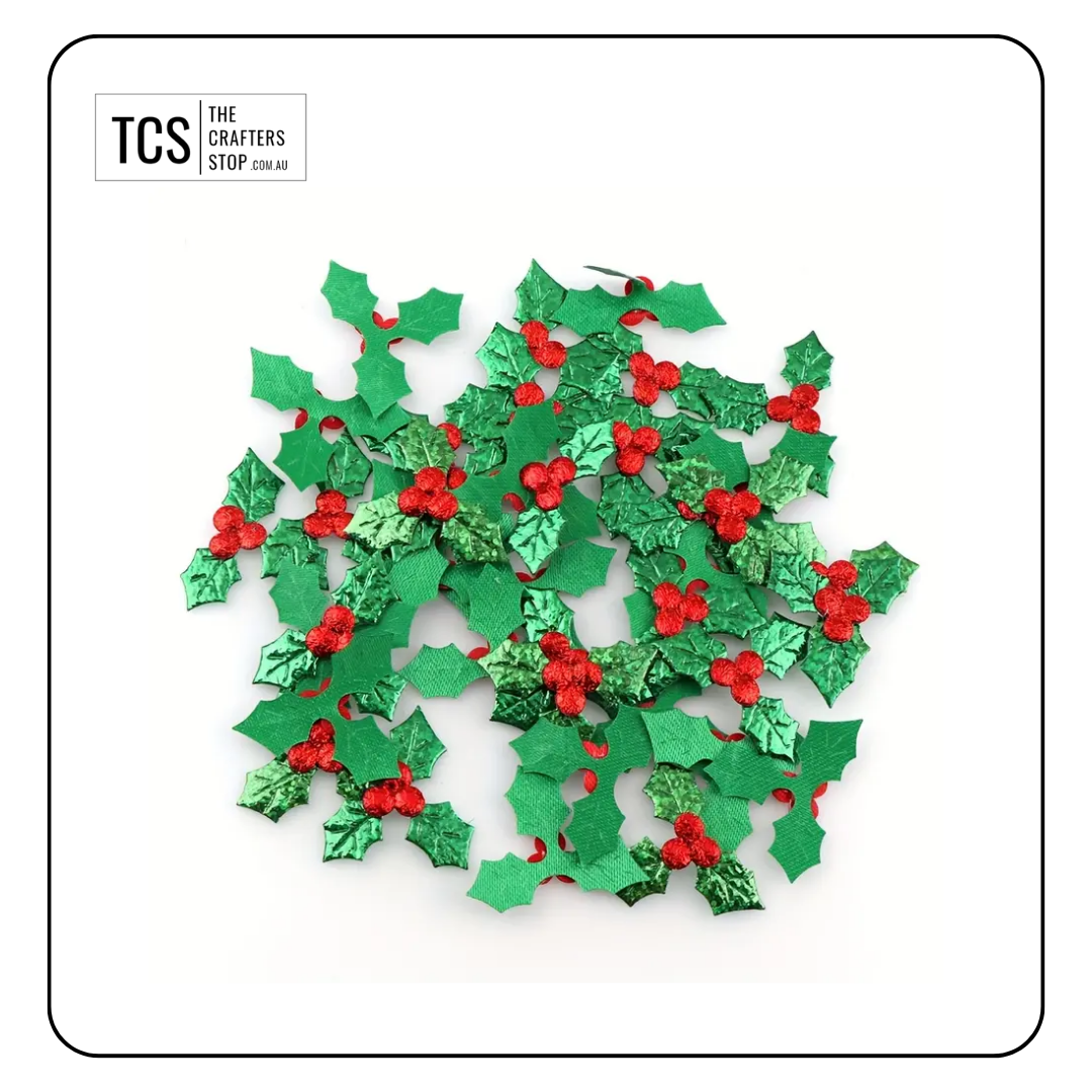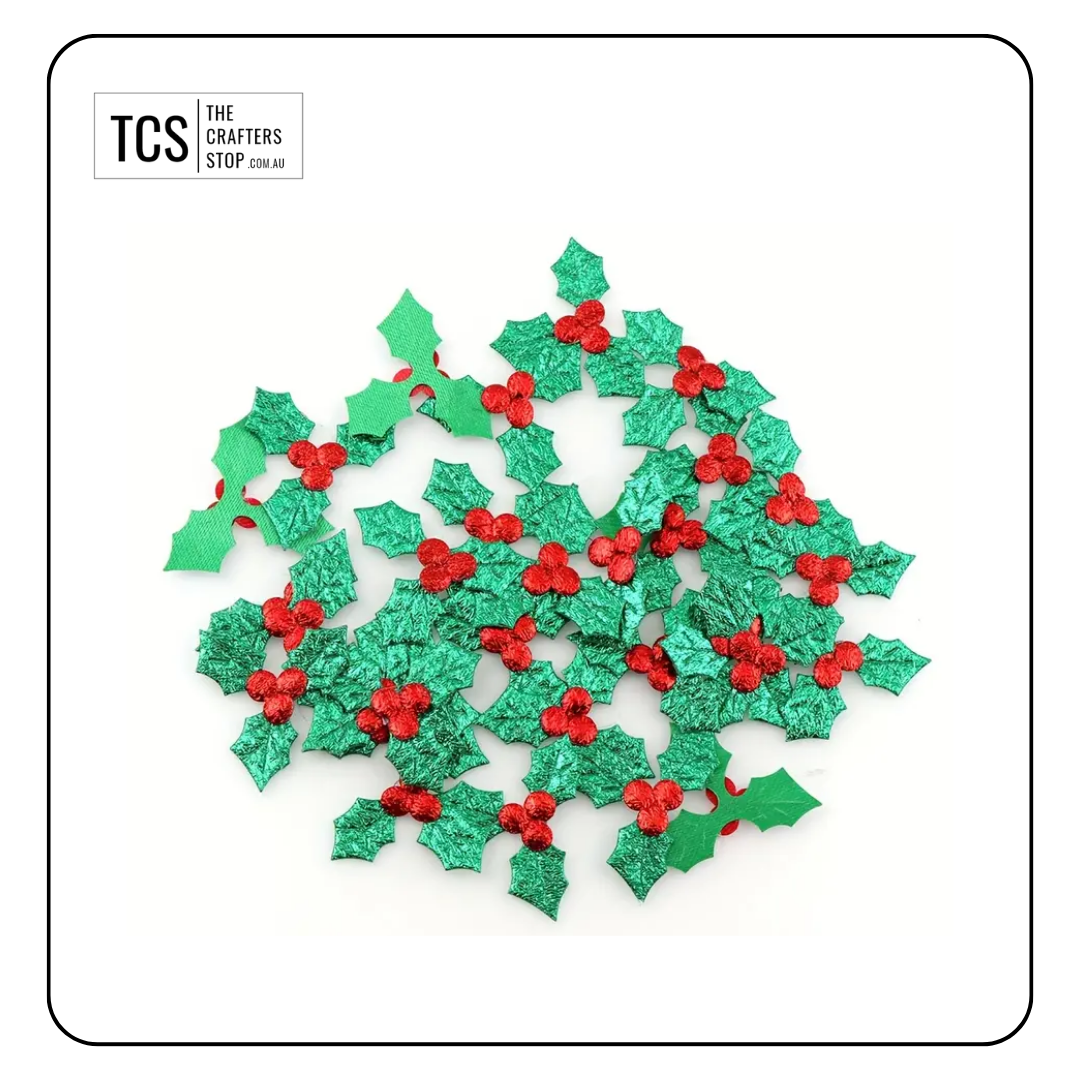 Christmas Holly Leaves & Berry Embellishments
