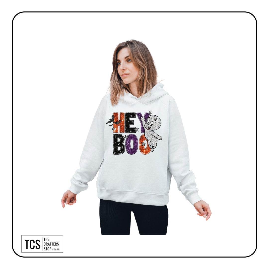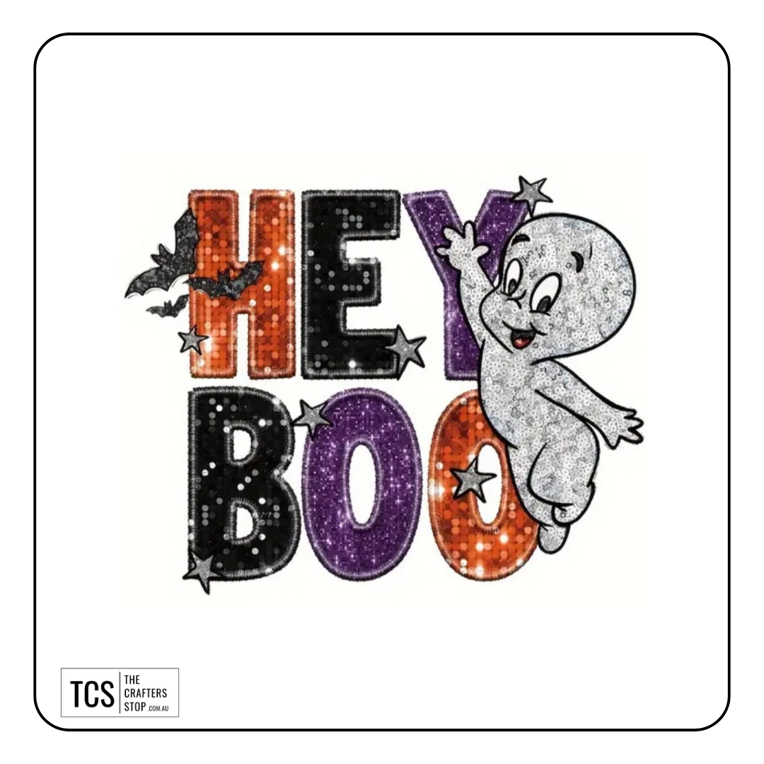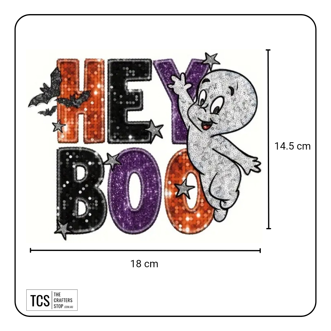 "HEY BOO" Halloween Theme Ready Made DTF Iron On Transfers