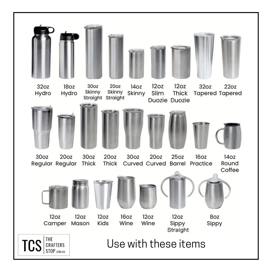 The cup cradle will fit most thin straight, tapered glasses, bottle thermos, and glassware. You will no longer have to worry about the items you’re working on rolling away when you’re placing your vinyl decal.