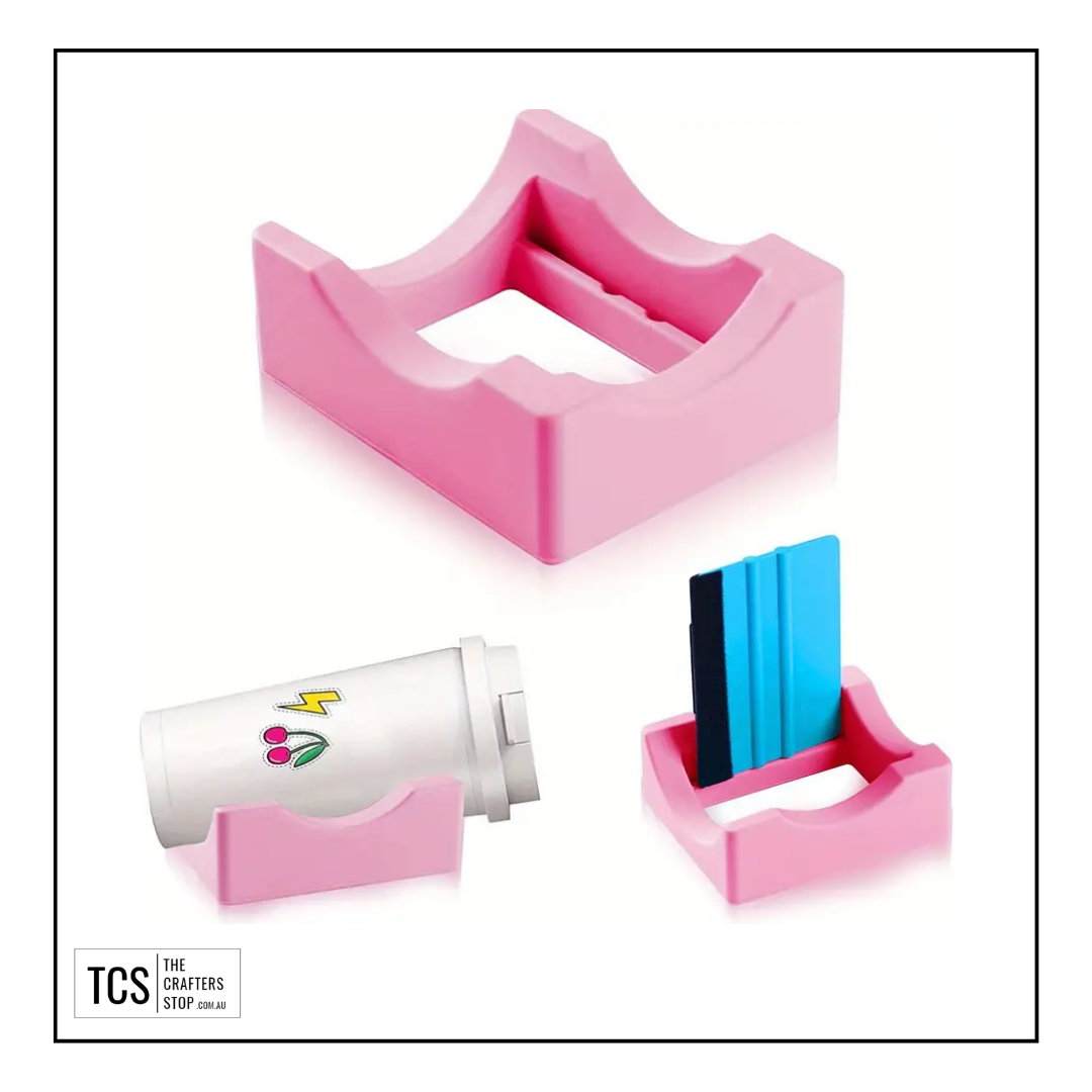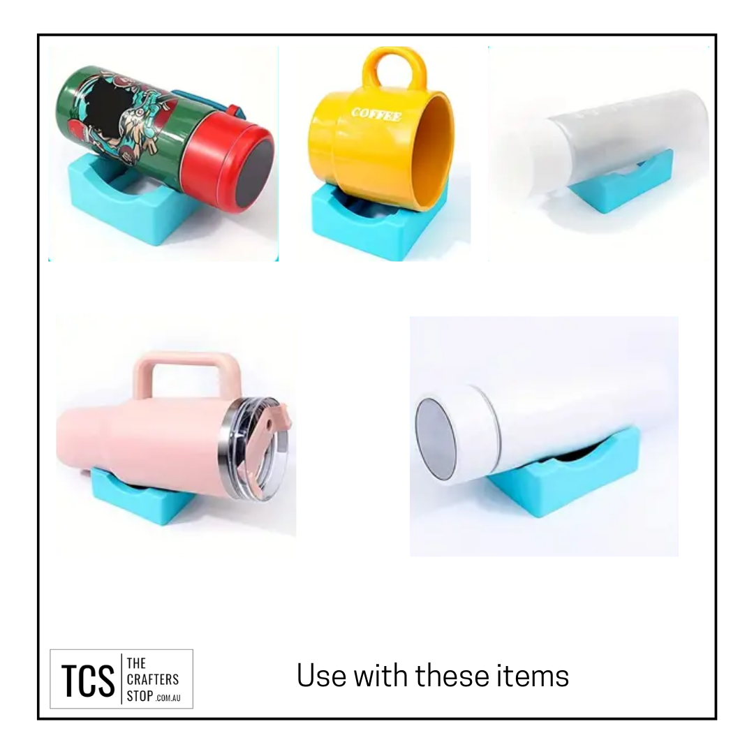 This tumbler holder is designed with two-angle support, including horizontal and inclined positions, which will help you fit and apply your vinyl decal or image.