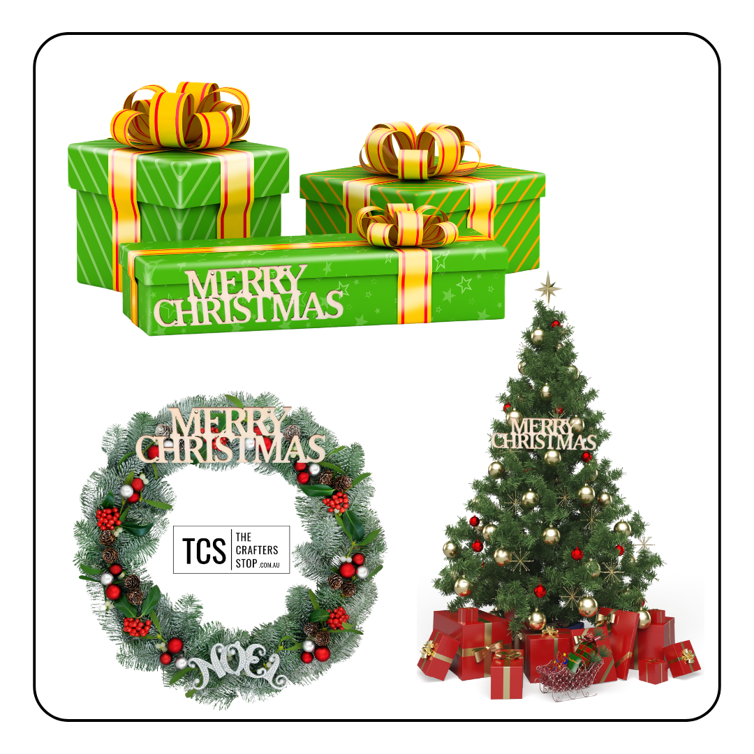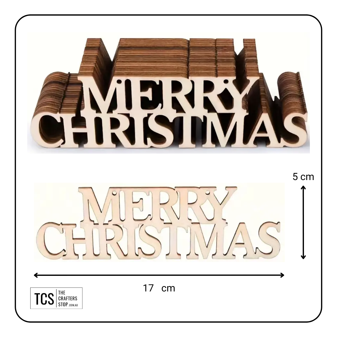 Wooden Merry Christmas cut-outs. Great for scrapbooking, card making and many more christmas decorations. Paint or stain them to add some festive colour.