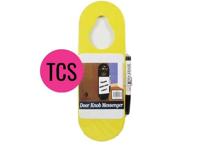 Checkout this handy door hanger sign, it is made of foam, with a white board section that you can write a note, saying or name or even decorate with a decal or image.