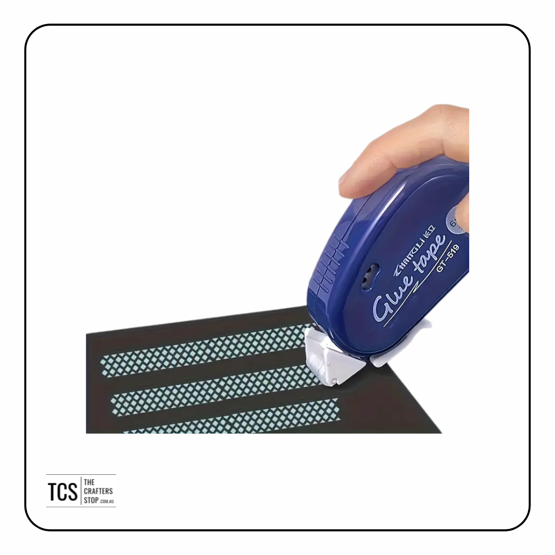 The Sticky Tape Mini Runner is a mini adhesive dispenser featuring acid-free, permanent, double-sided adhesive tape. Suitable for use in scrapbooking, card-making and other papercraft projects.