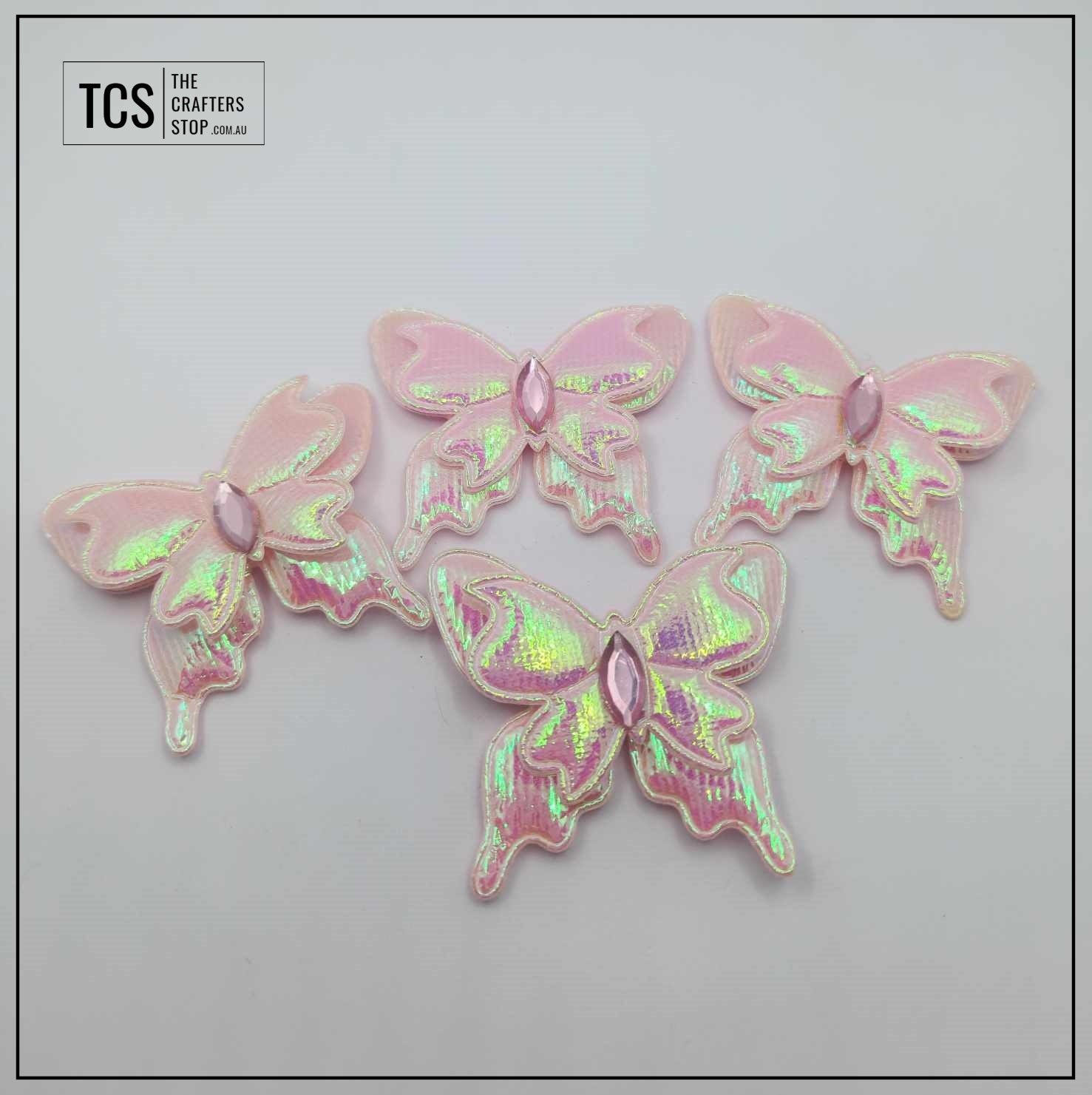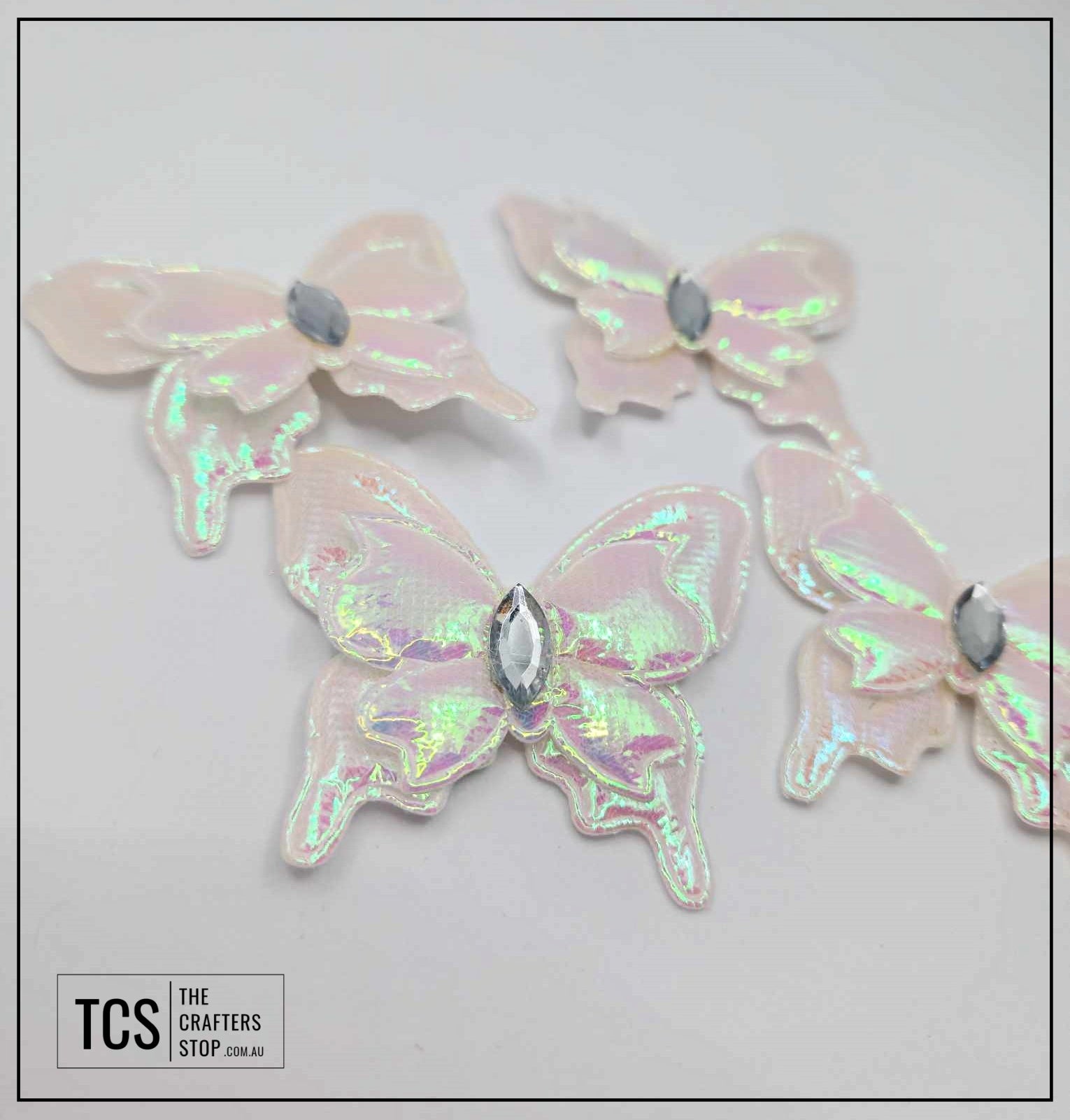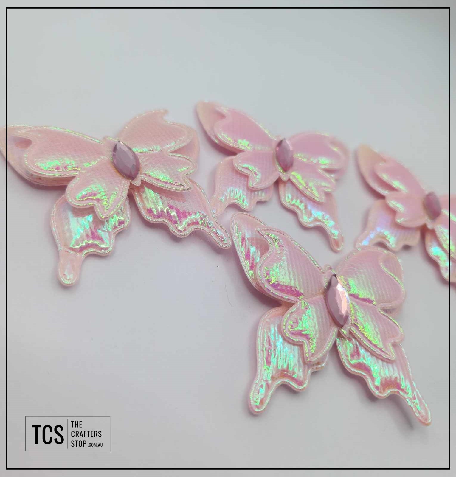 Pretty 3D Fabric Iridescent Butterflies with Gem embellishment.