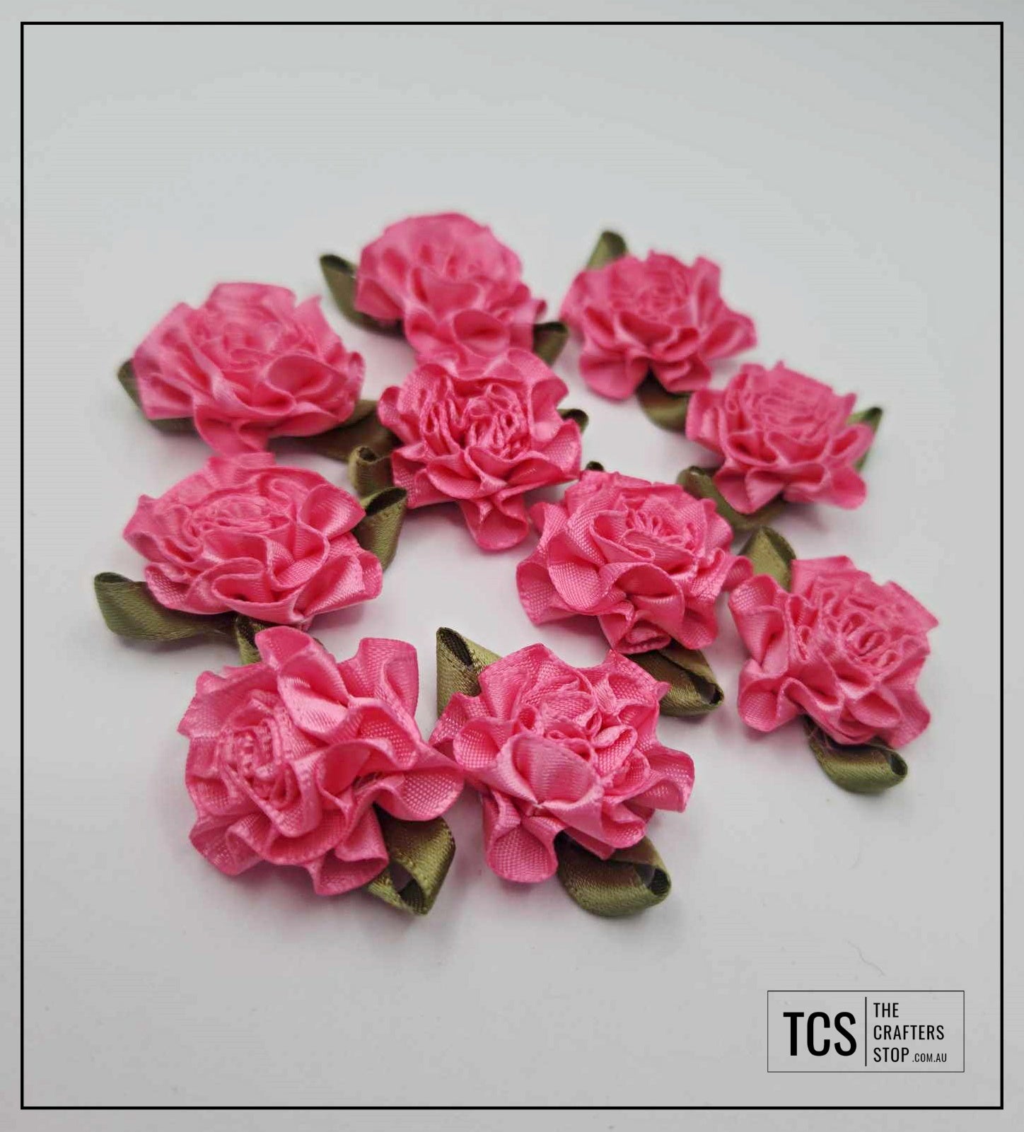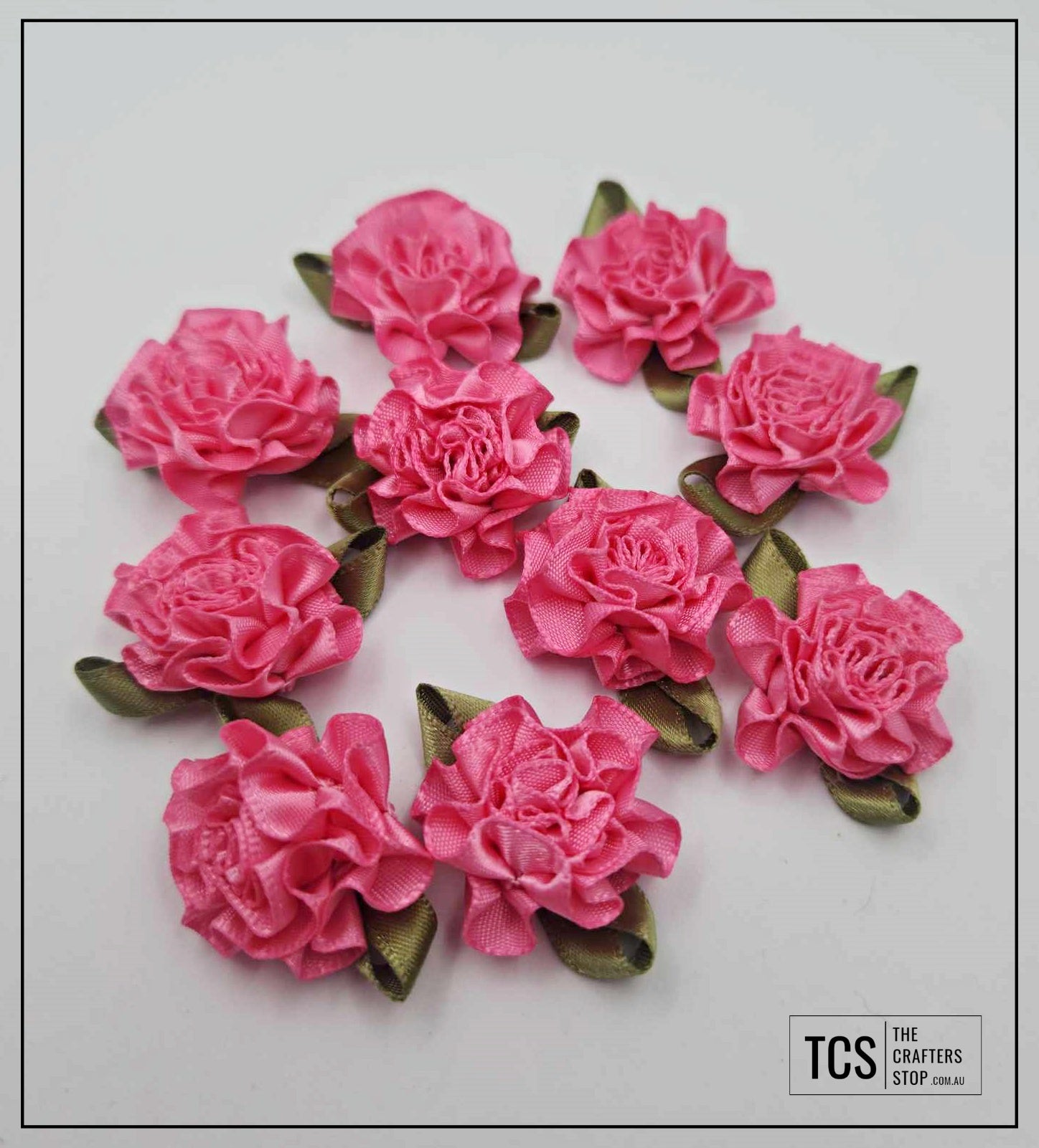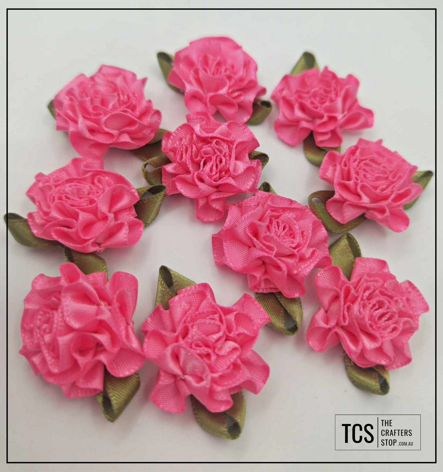 Fabric Pink Carination Craft Flowers (X10 Pack)