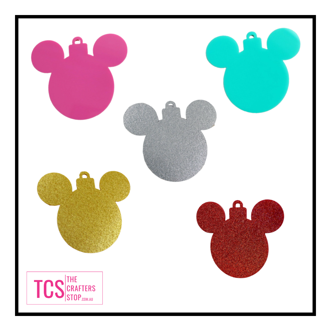 Oh!!!! How cute are these acrylic Mickey Mouse Christmas Bauble blanks? Make a number of personalised gifts with these cute blanks from keychains, hanging ornaments or bag tags with an initial or name. Each blank includes a hole ready for you to attach hardware.