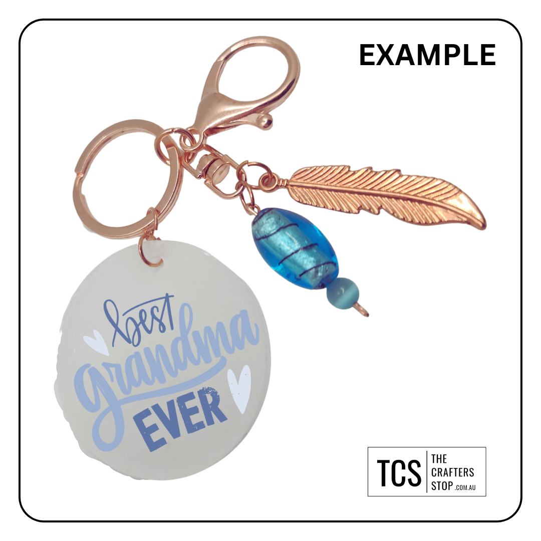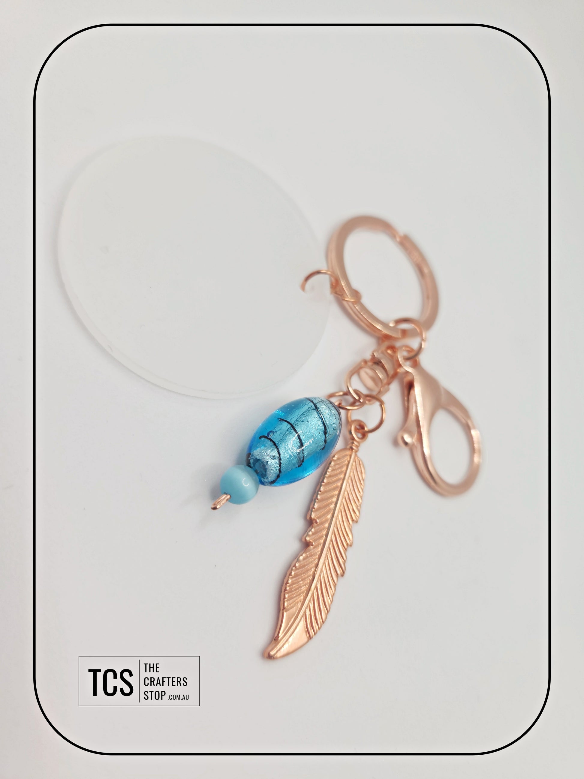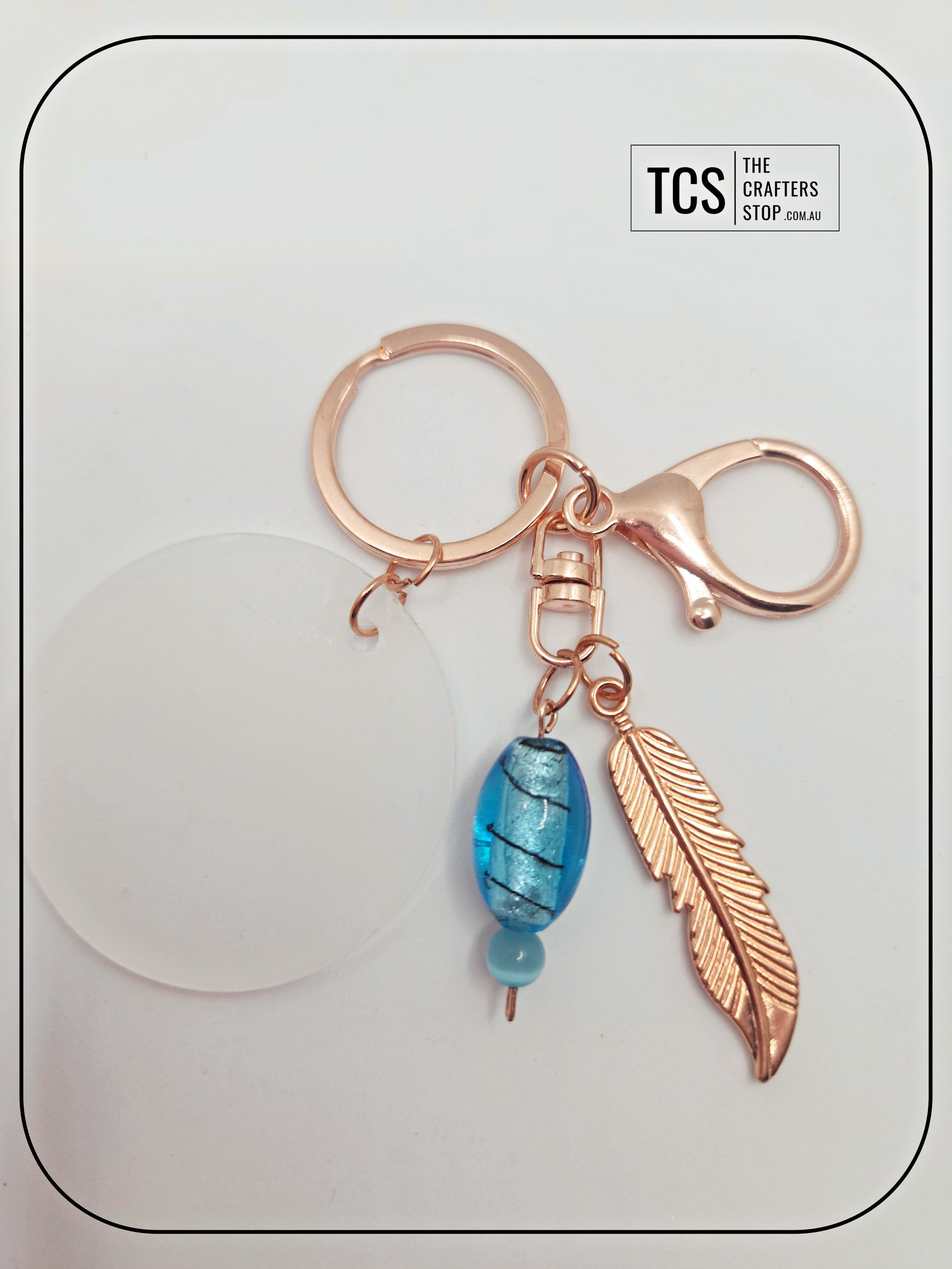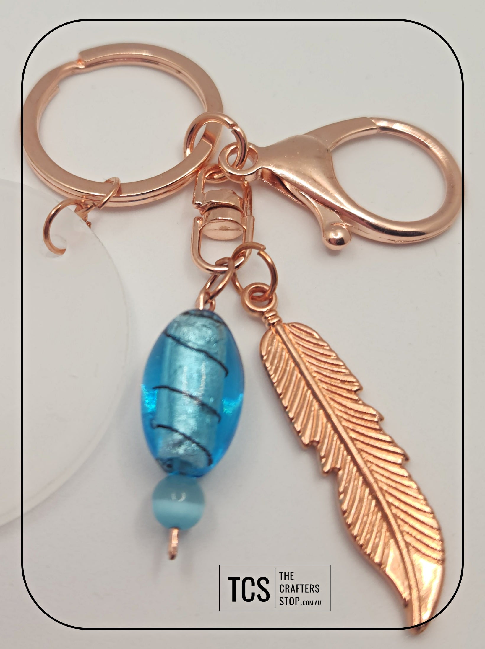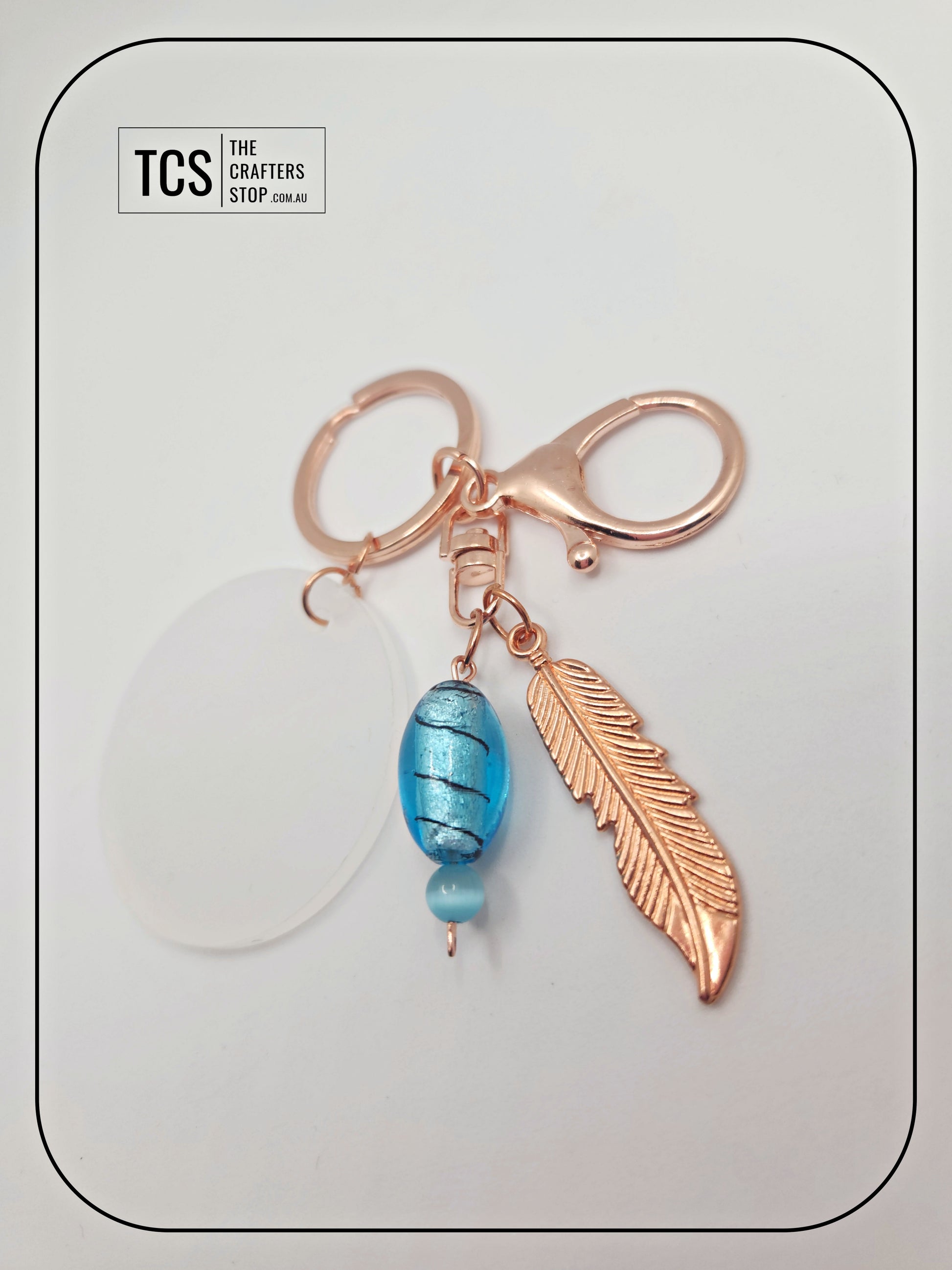 Ladies Rose Gold Keyring with Acrylic Blank and Glass Beads