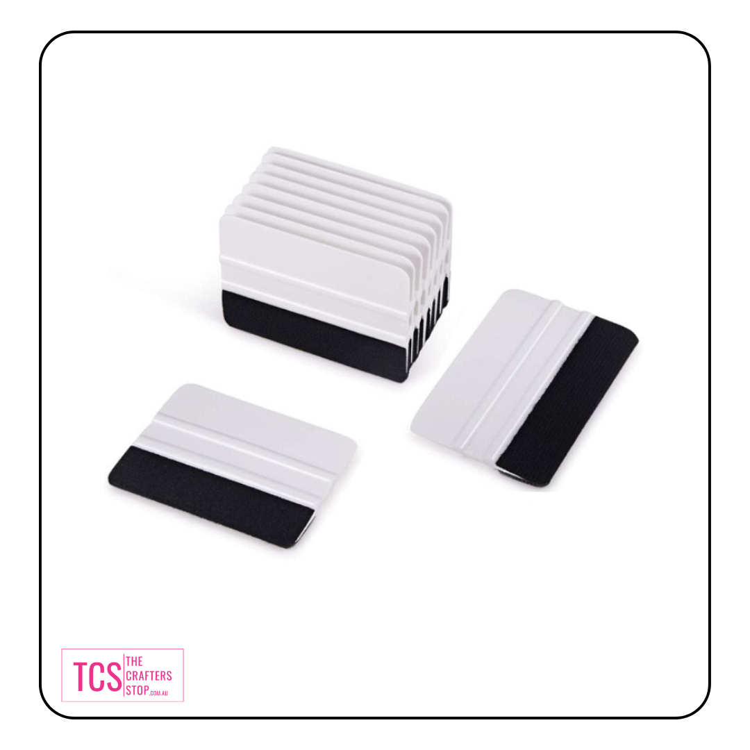 This Medium Vinyl Application Scraper/Squeegee Tool can be used to smooth out bubbles or creases from adhesive vinyl or car film. The felt edge protects the product and makes a smoother finish.