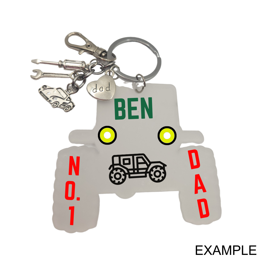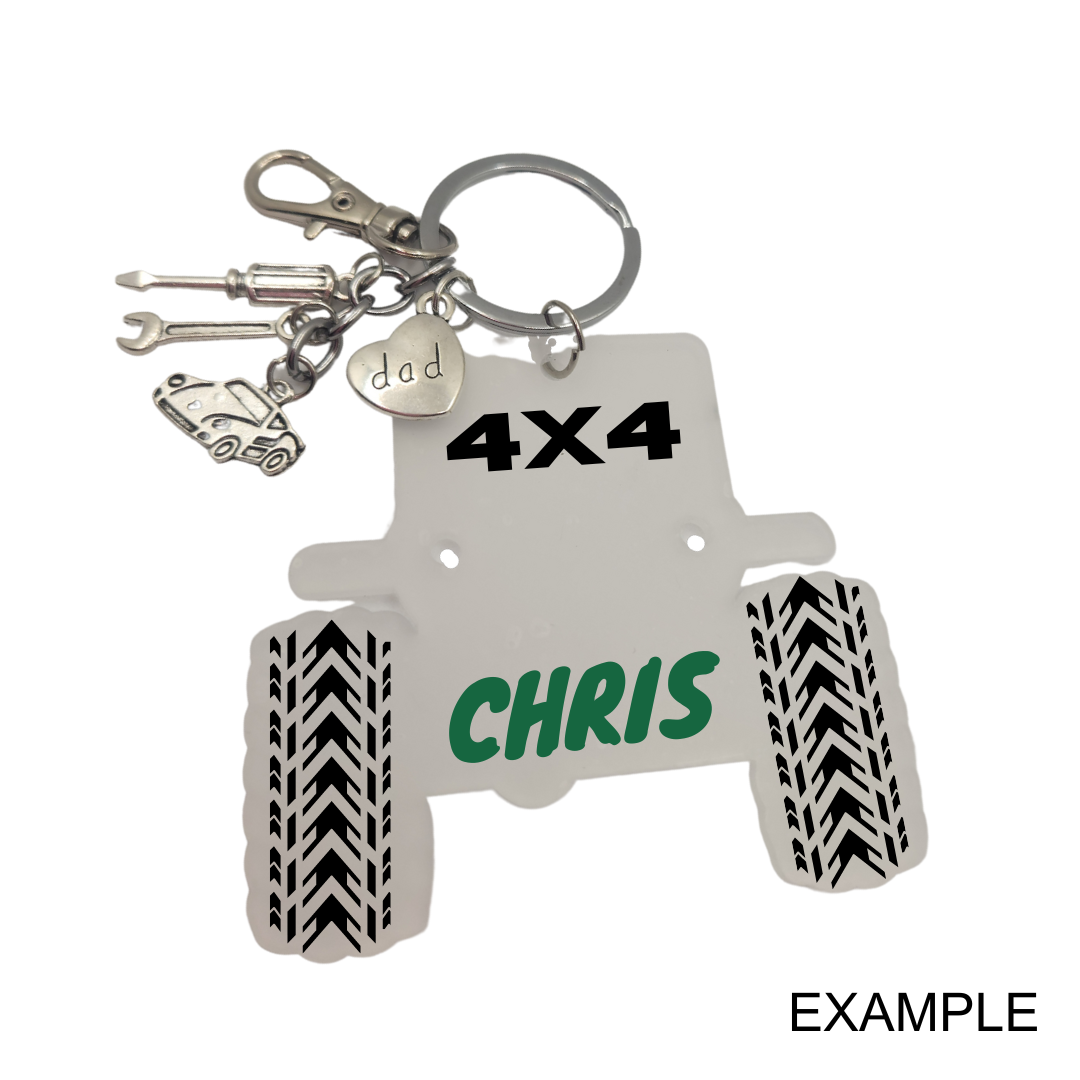 Checkout these awesome metal father's day keyring's. Available in this 4x4 car theme with Acrylic Blank. Add a name or initial to the acrylic blank for a great personalised christmas, birthday or father's day gift.