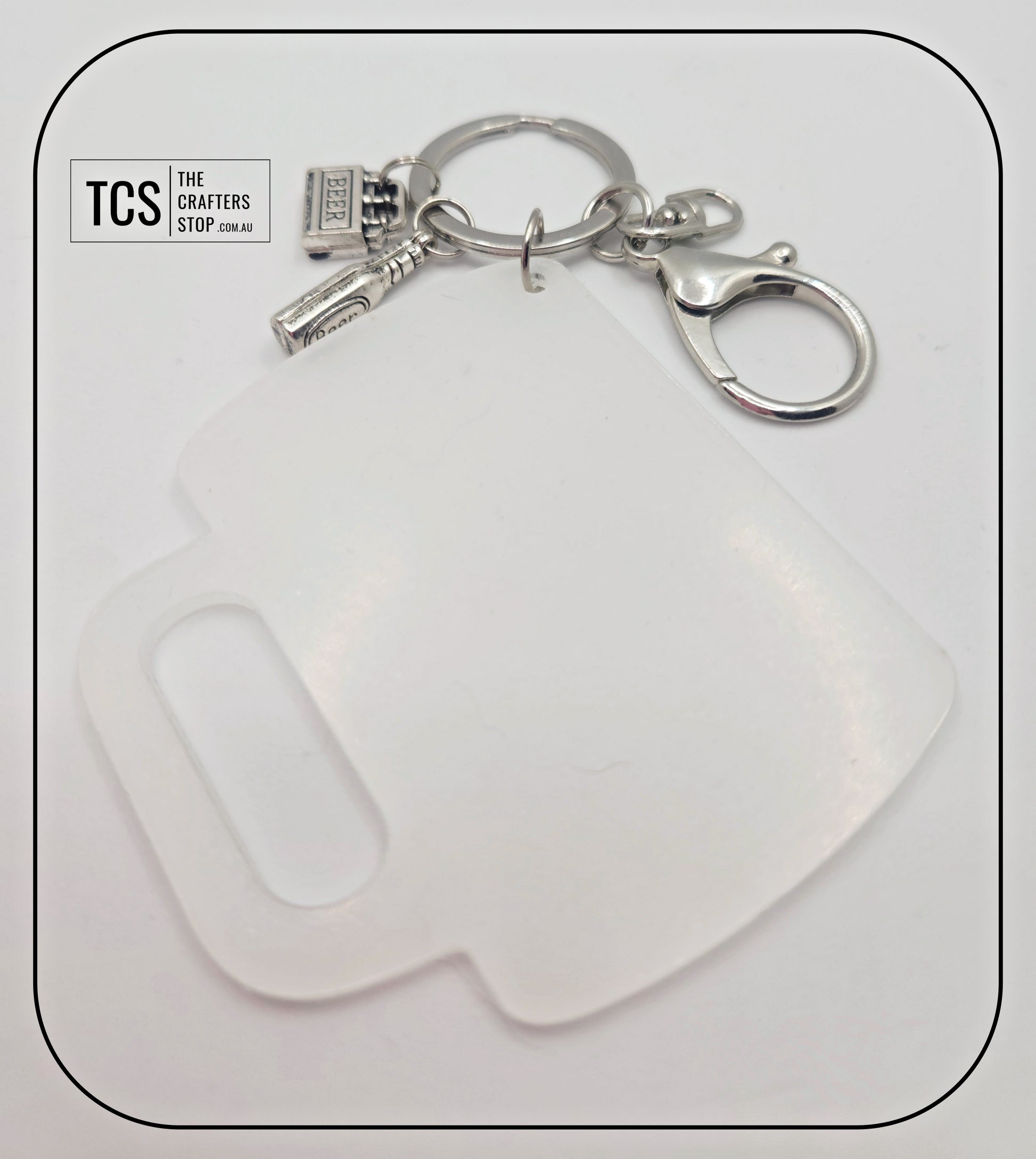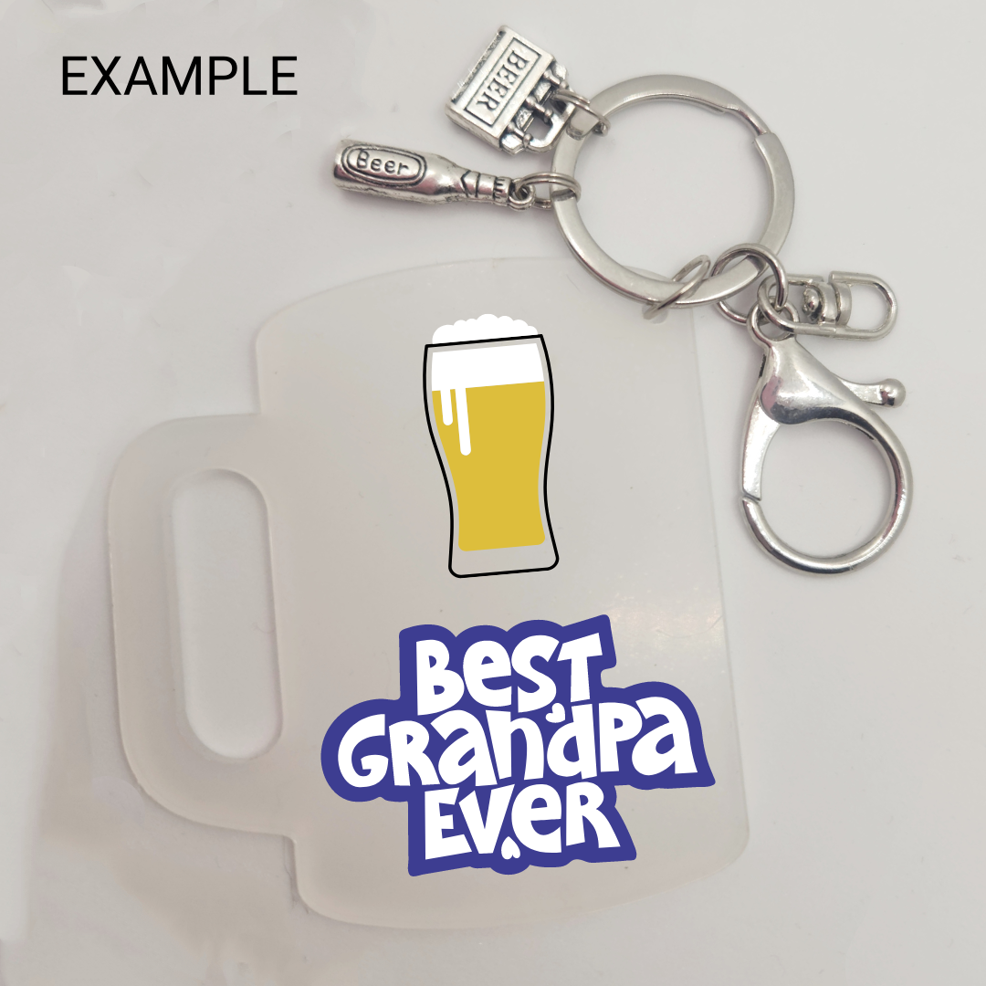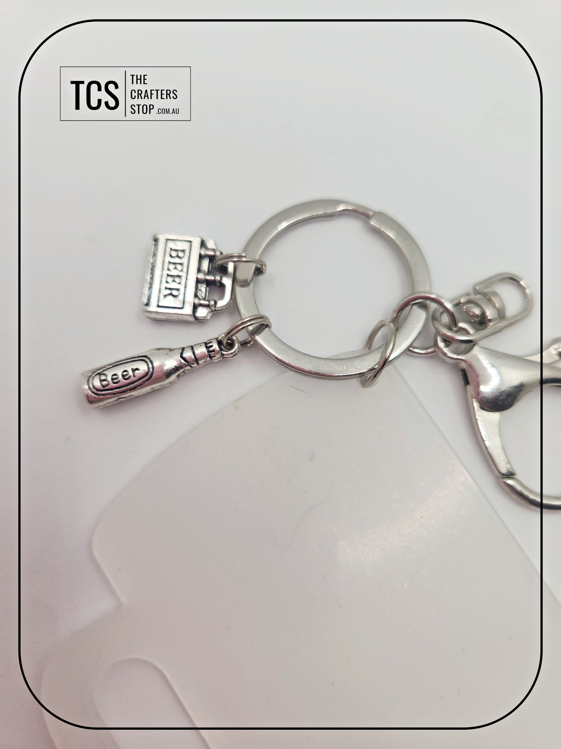 Metal Charm Beer Keyring with Acrylic Blank (Father's Day)