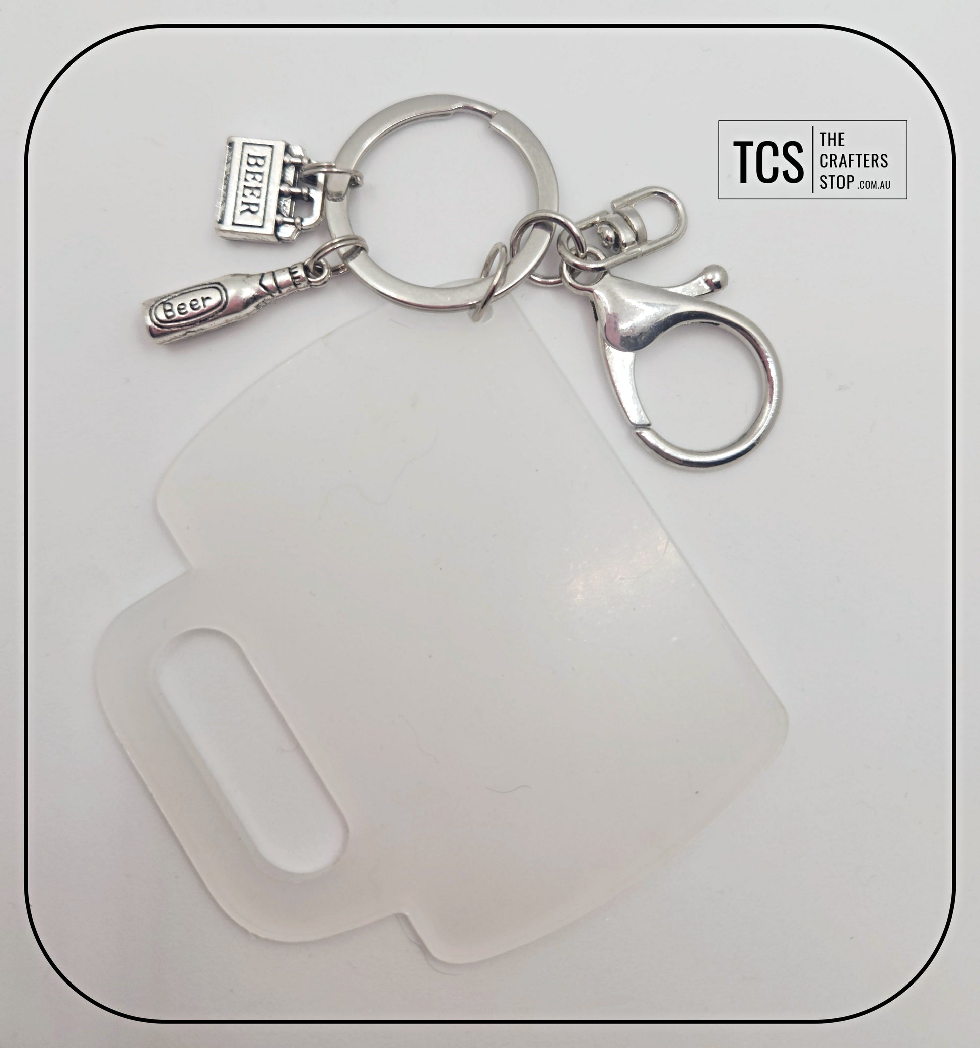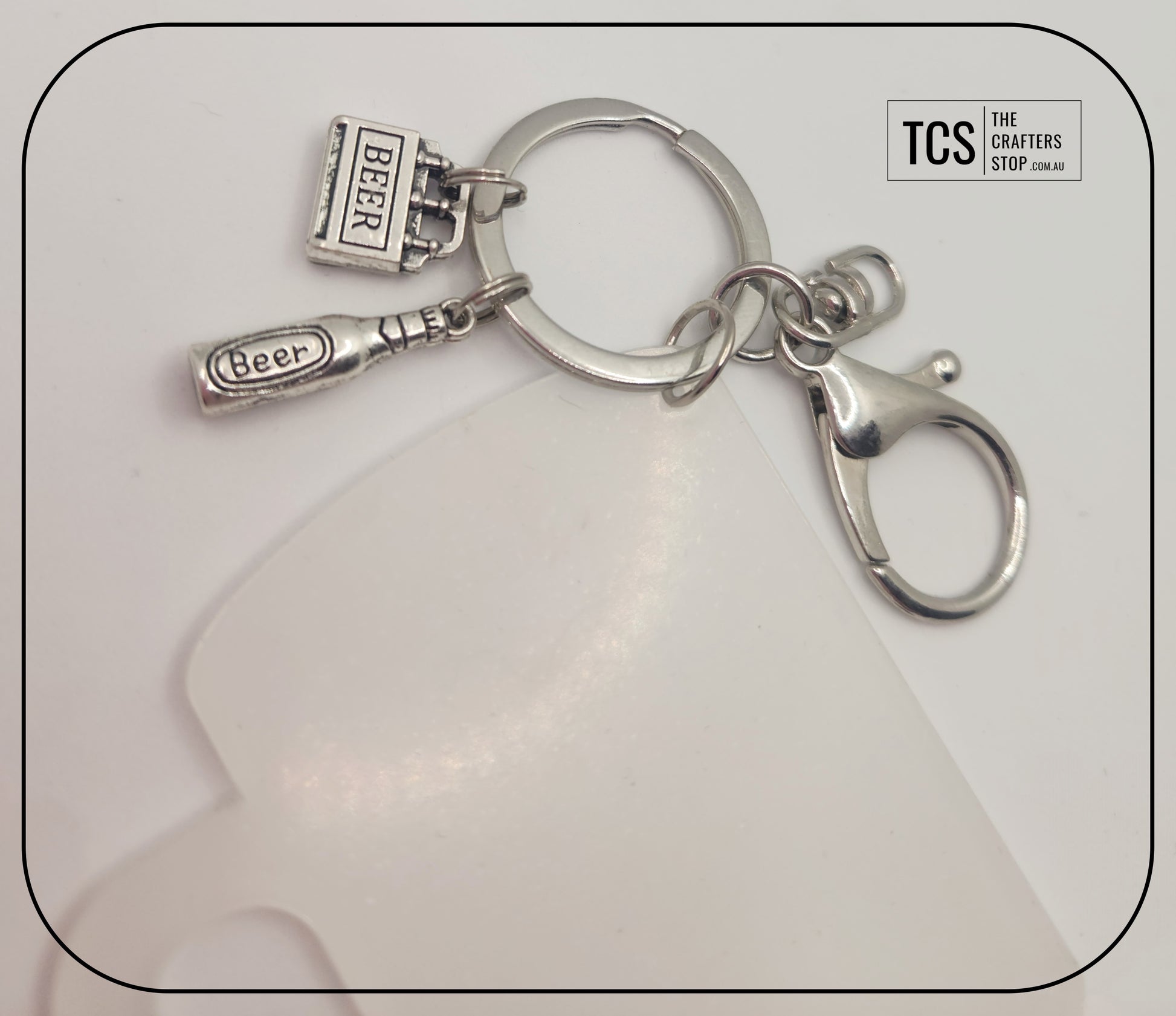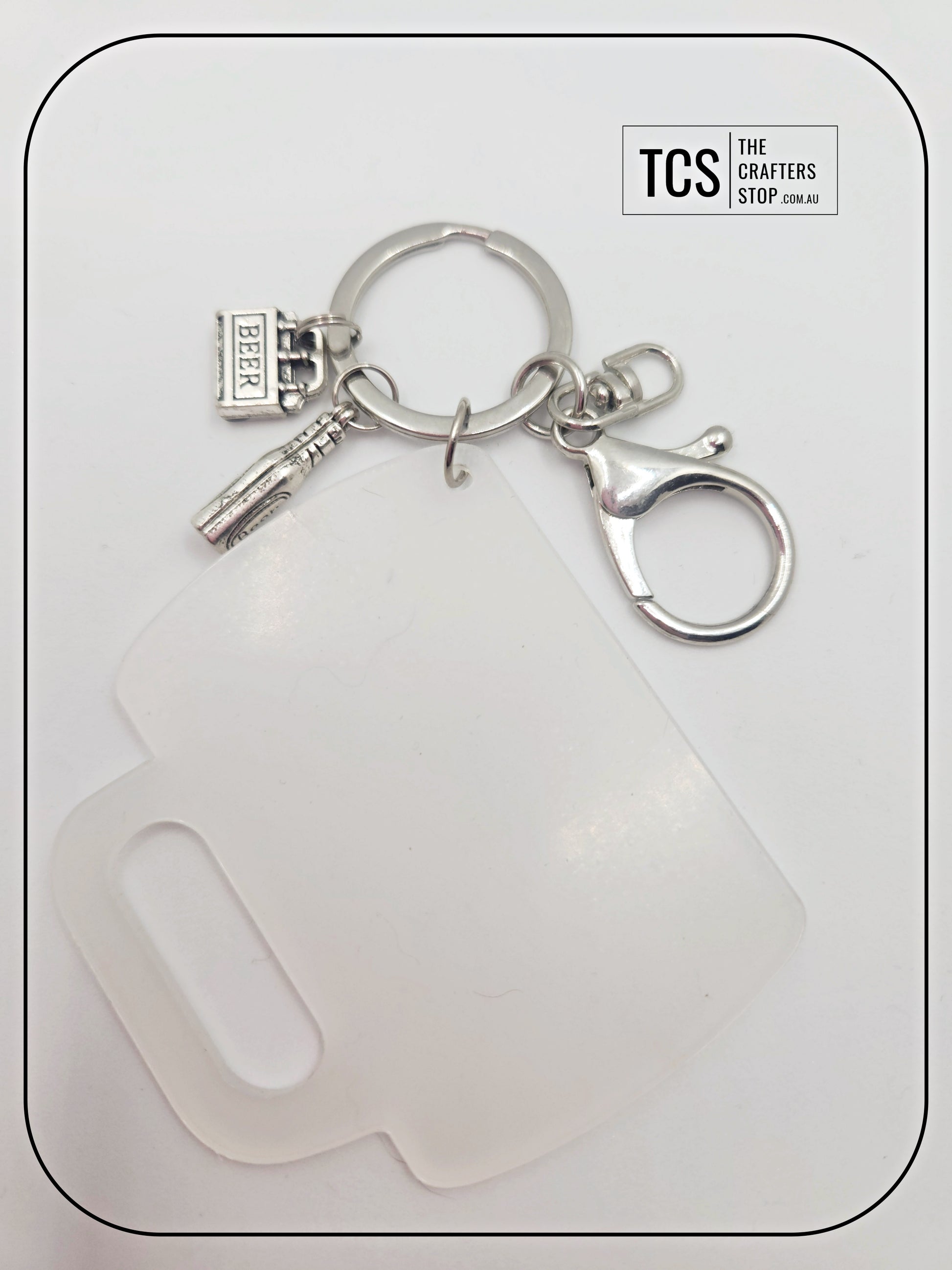 Metal Charm Beer Keyring with Acrylic Blank (Father's Day)