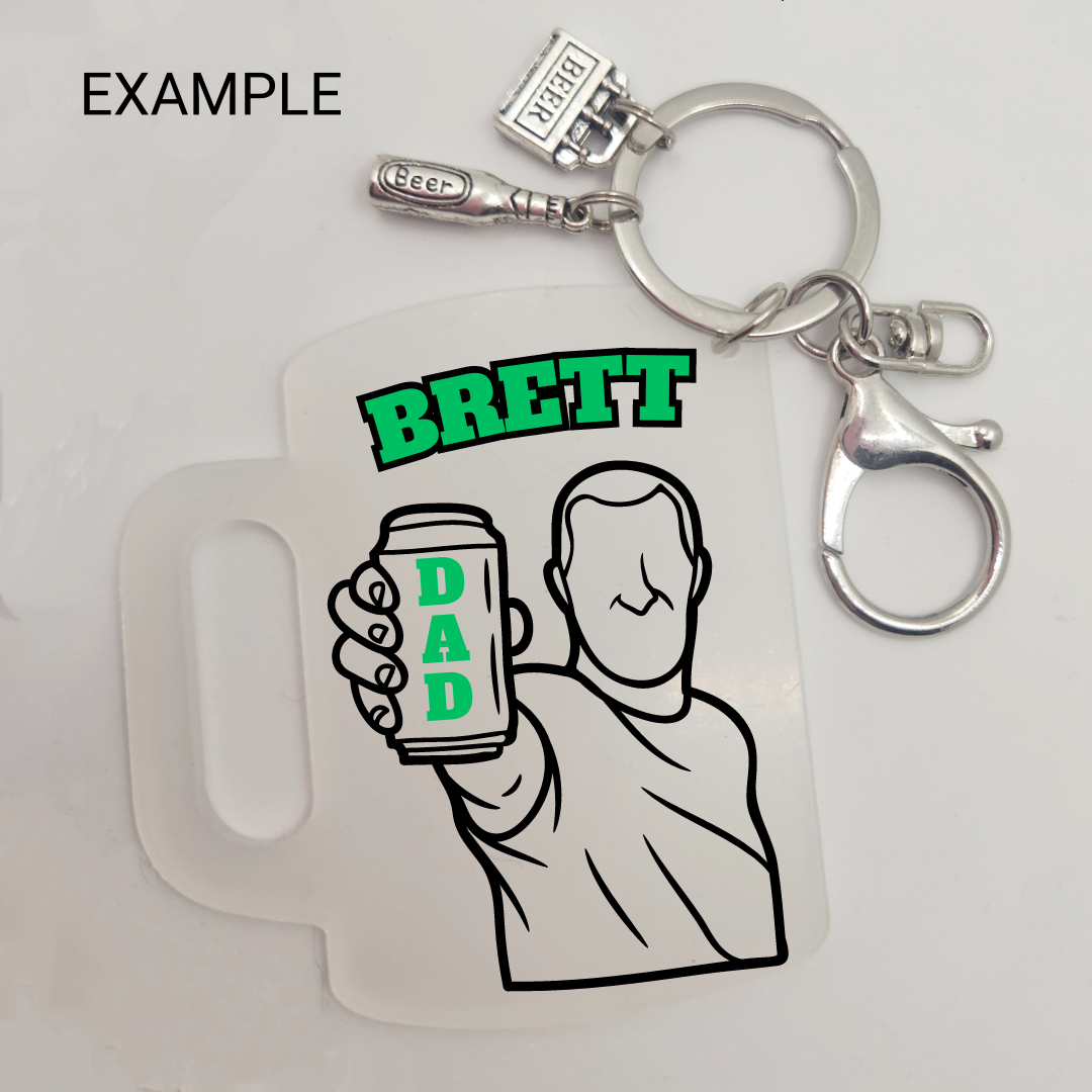 Checkout these awesome metal father's day keyring's. Available in this Beer theme with Acrylic Blank. Add a name or initial to the acrylic blank for a great personalised christmas, birthday or father's day gift.