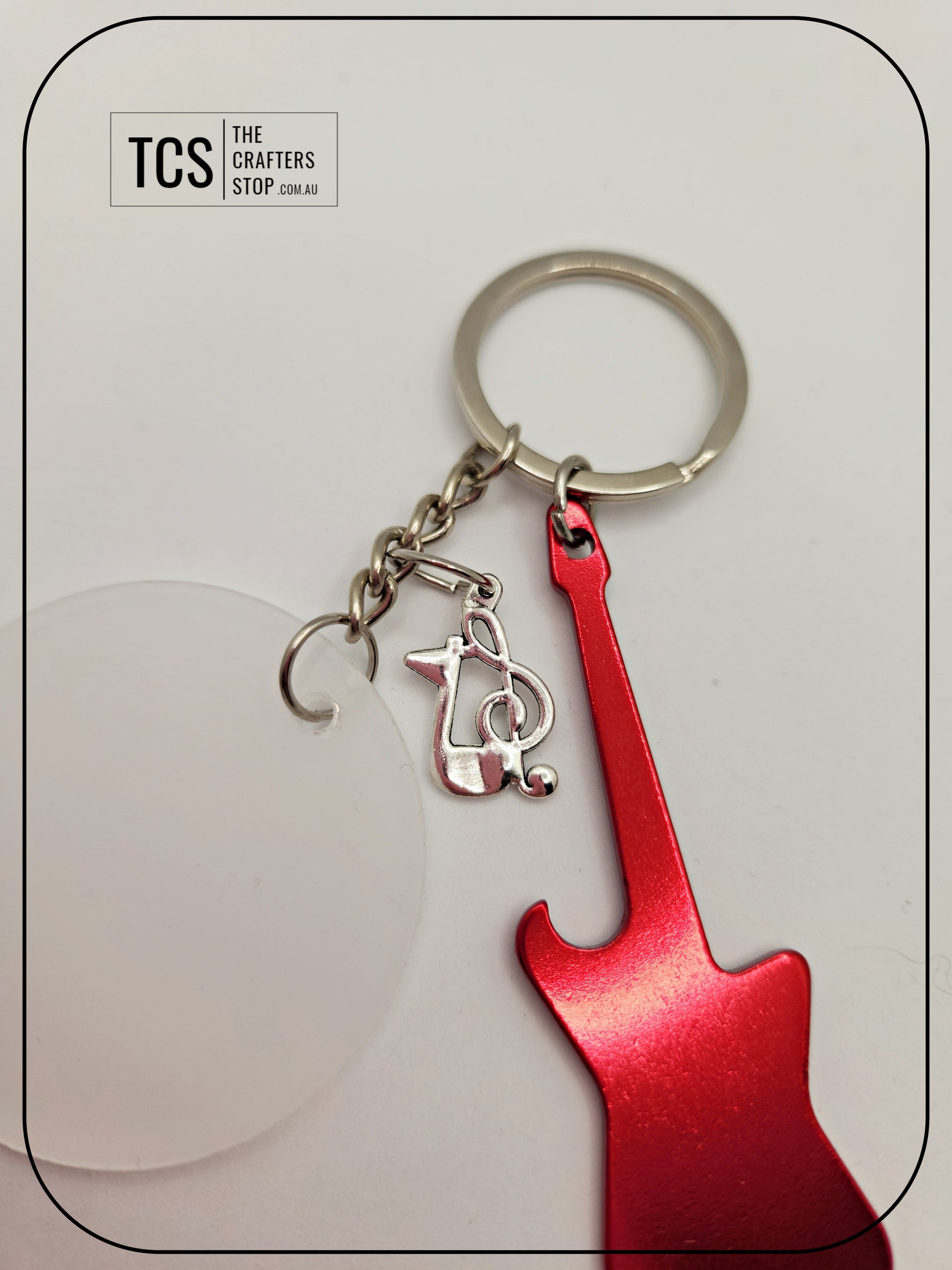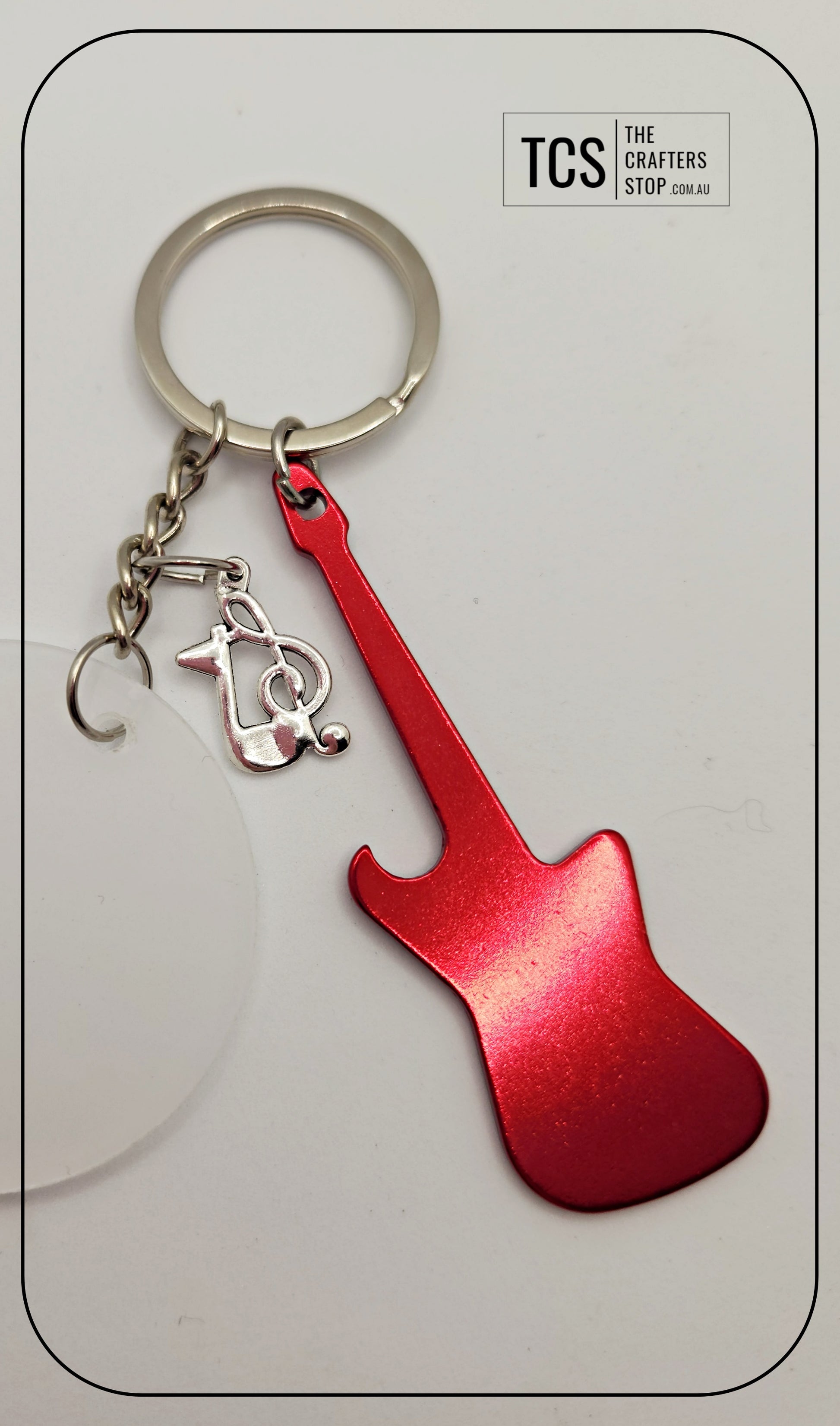 Guitar Metal Bottle Opener Keyring with Acrylic Blank (Father's Day)