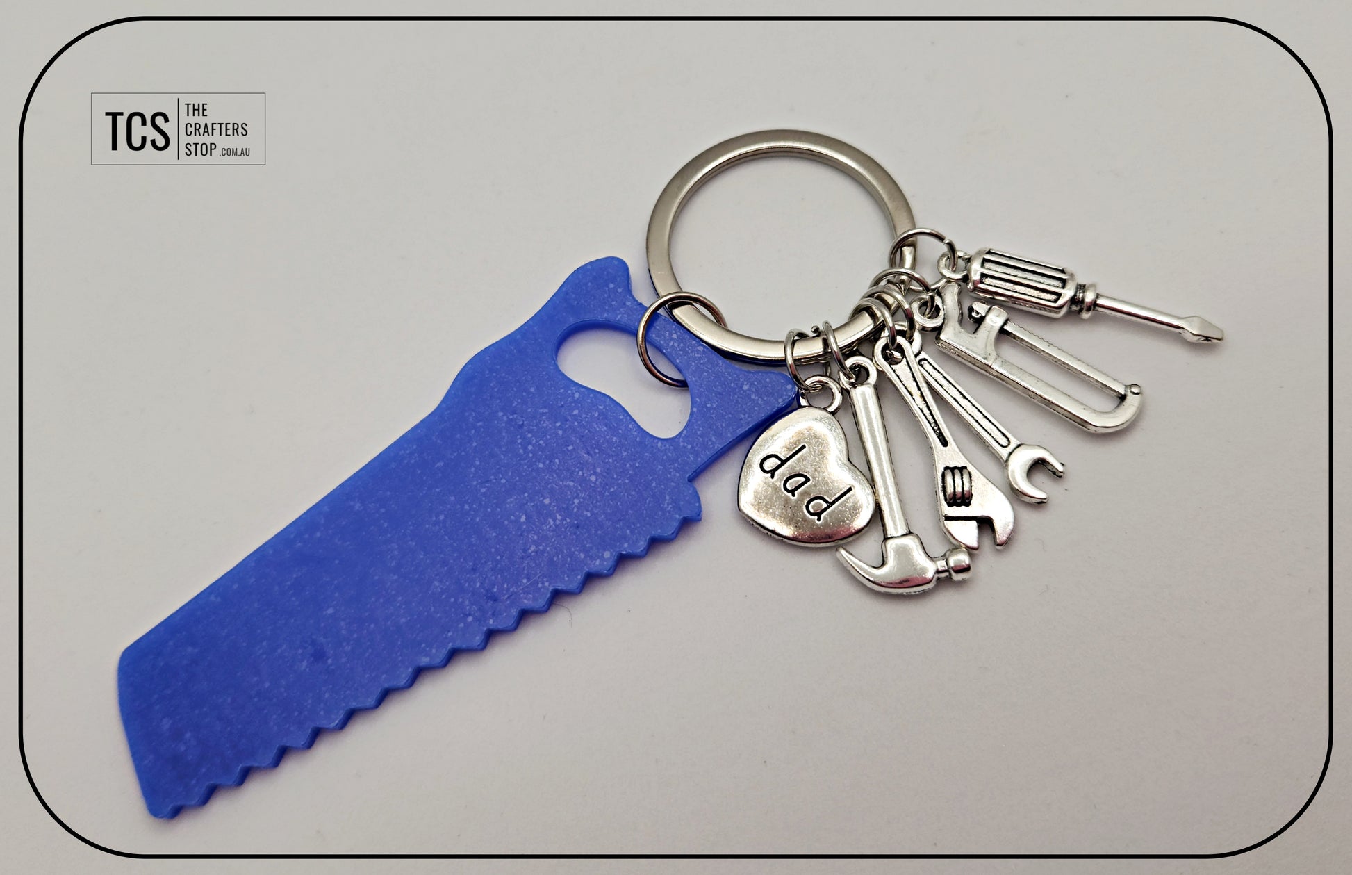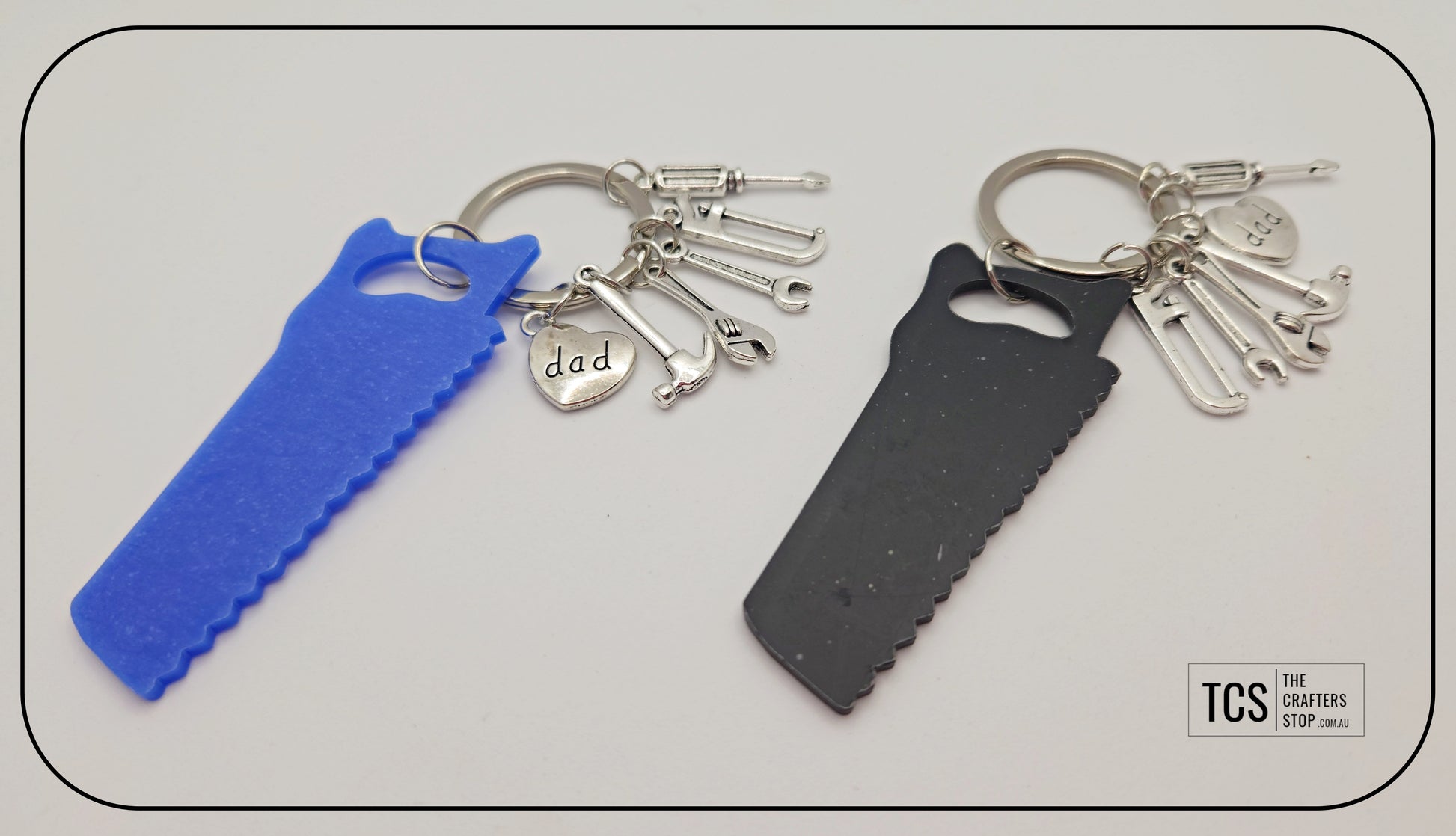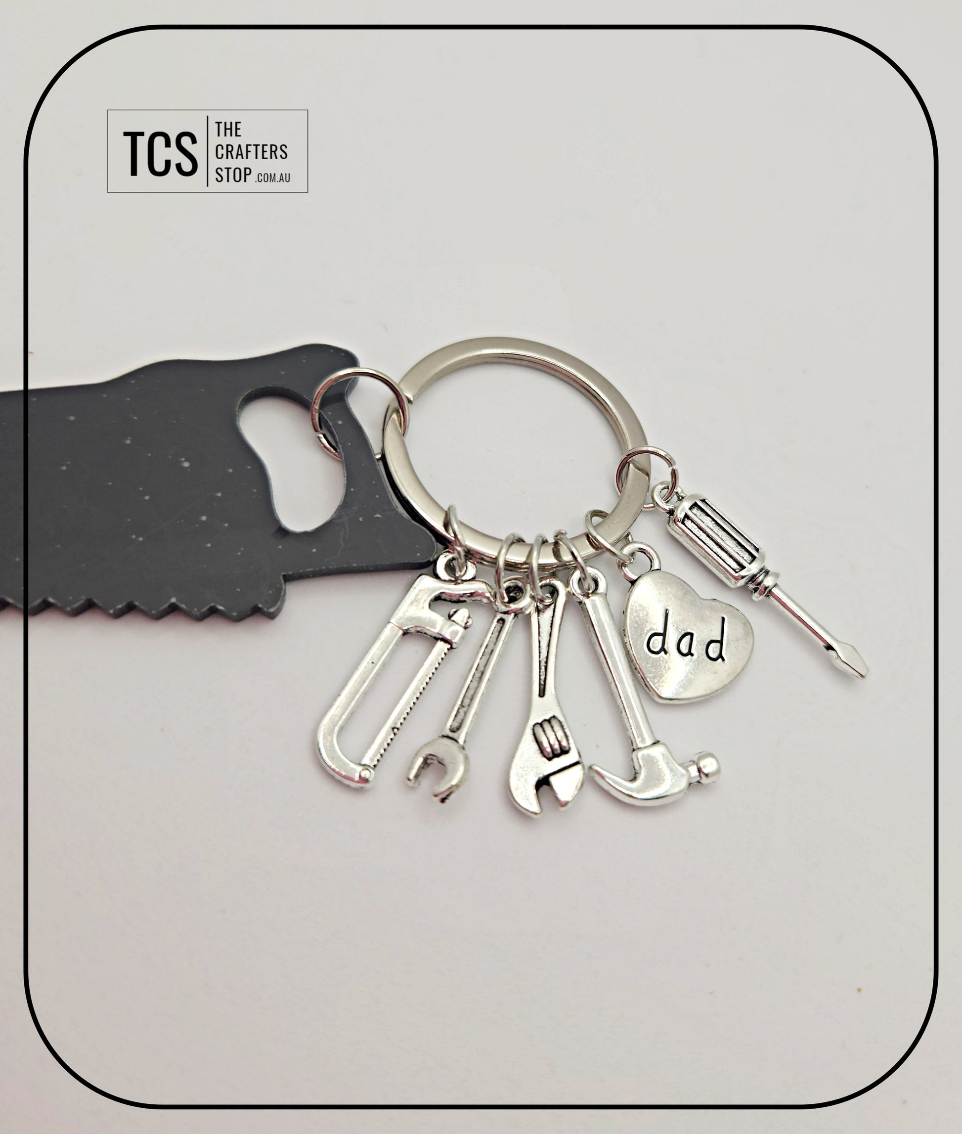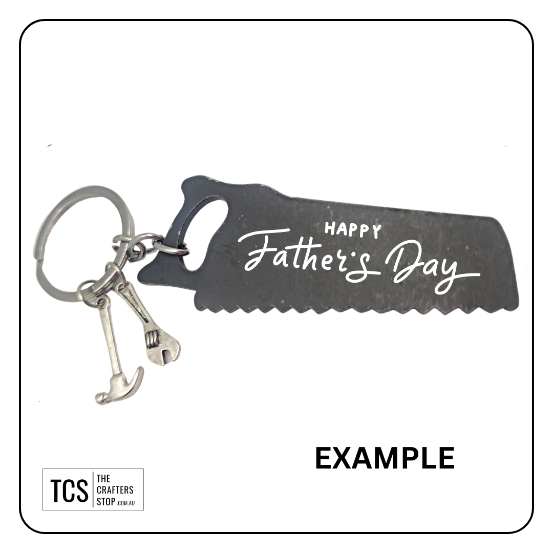 Checkout these awesome metal father's day keyring's. Available in this hand tool theme with Acrylic Blank. Add a name or initial to the acrylic blank for a great personalised christmas, birthday or father's day gift.