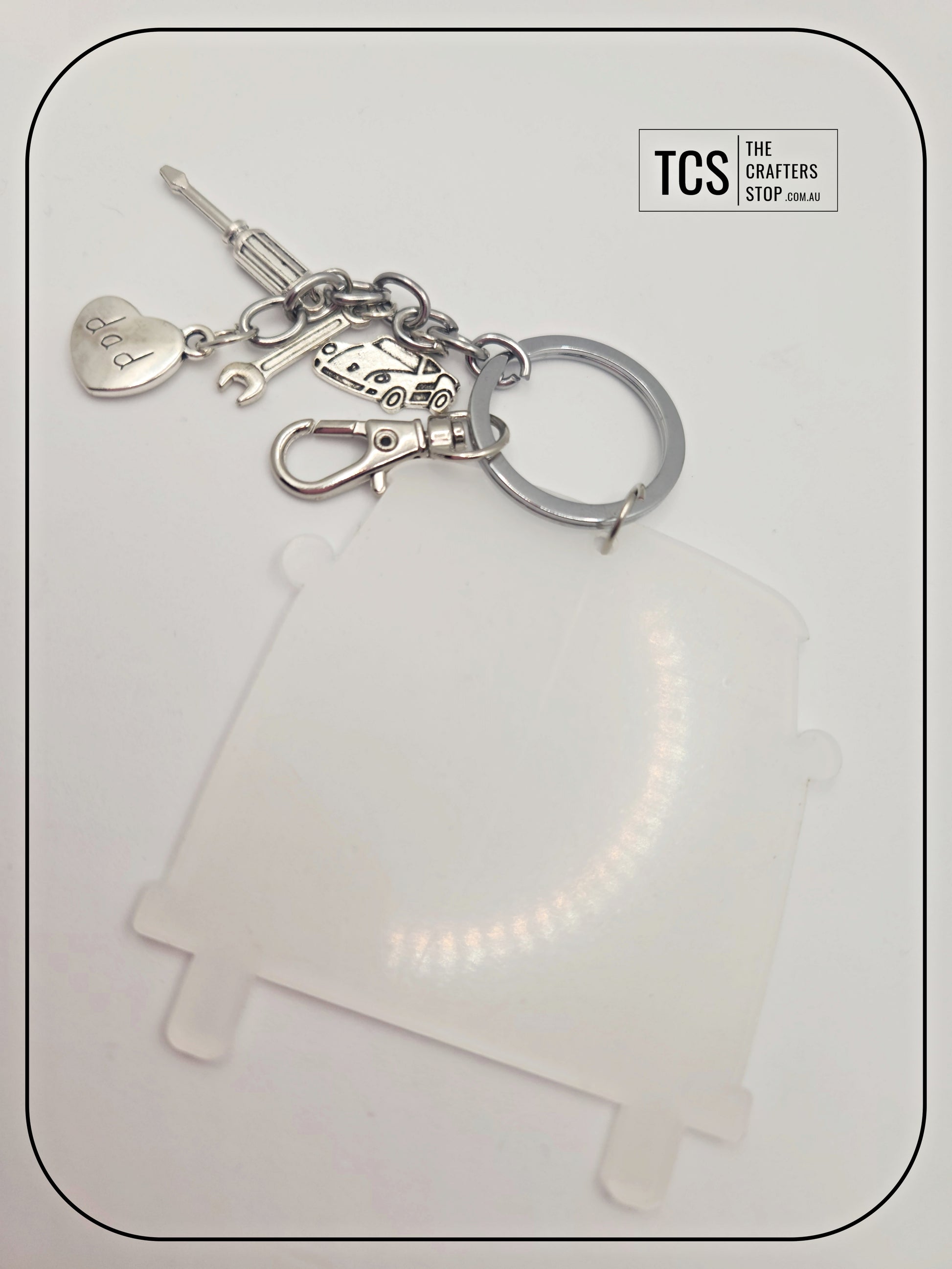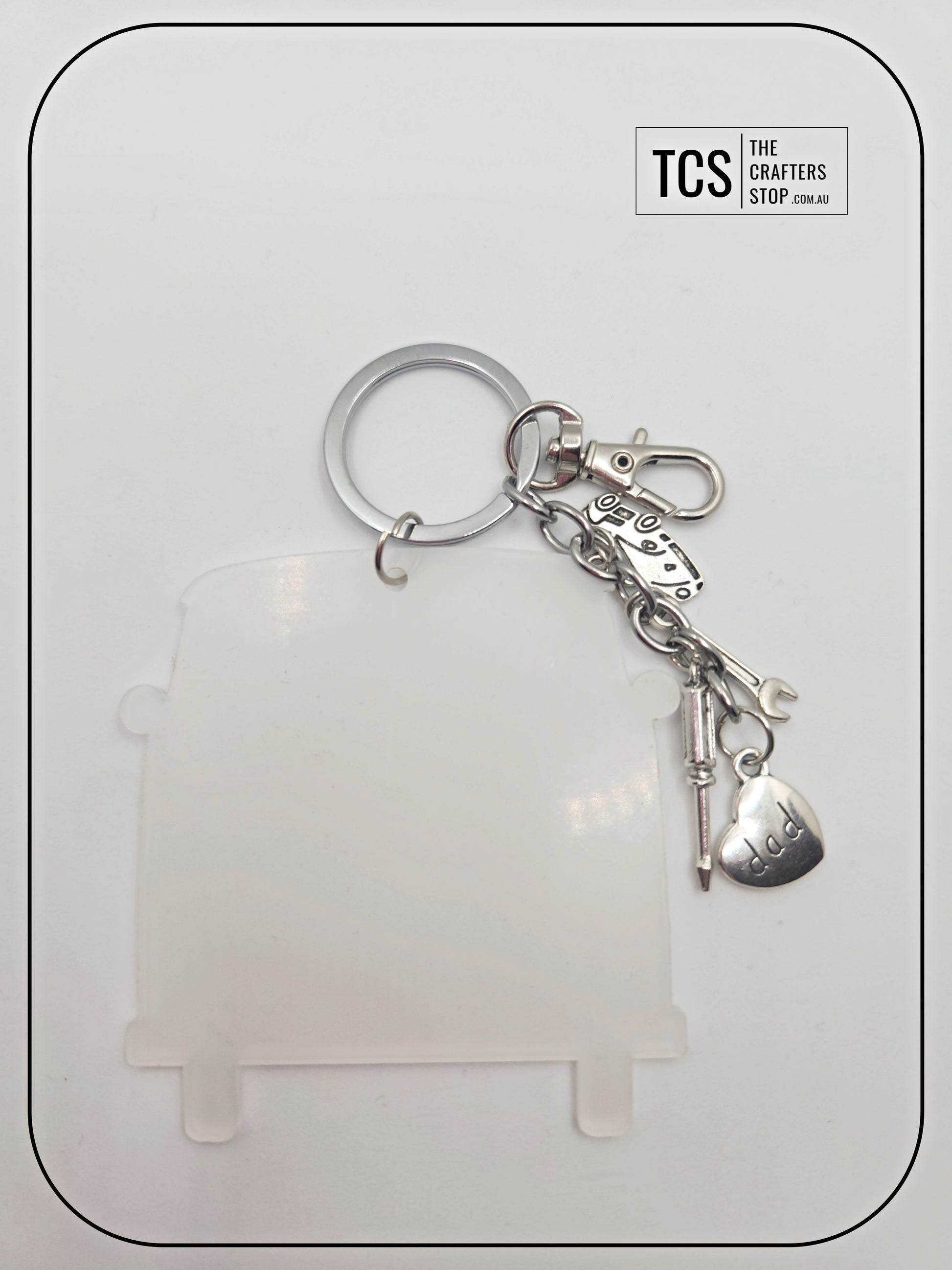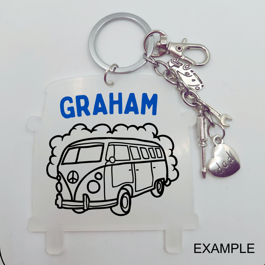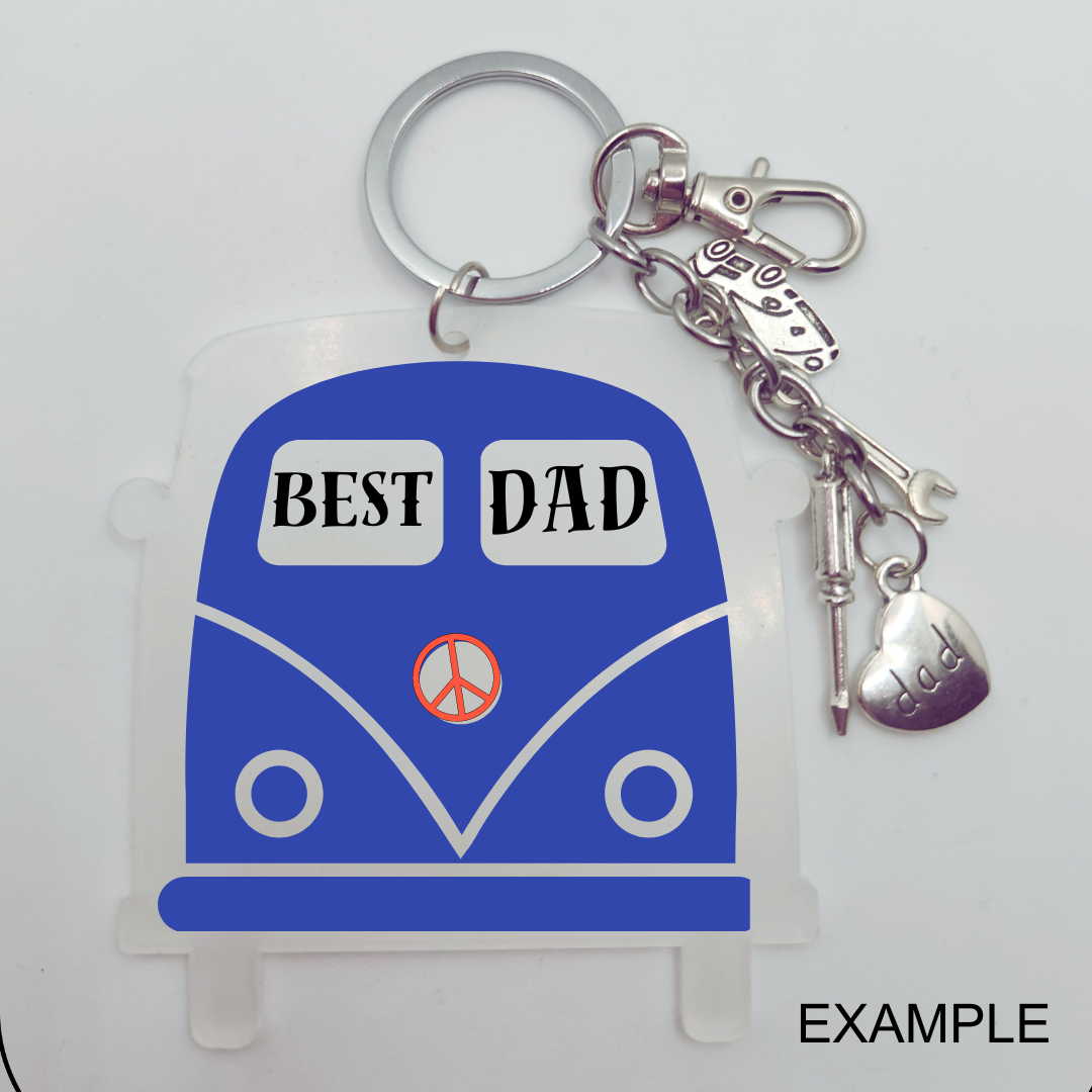 Metal Charm Volkswagen Van Keyring with Acrylic Blank (Father's Day)