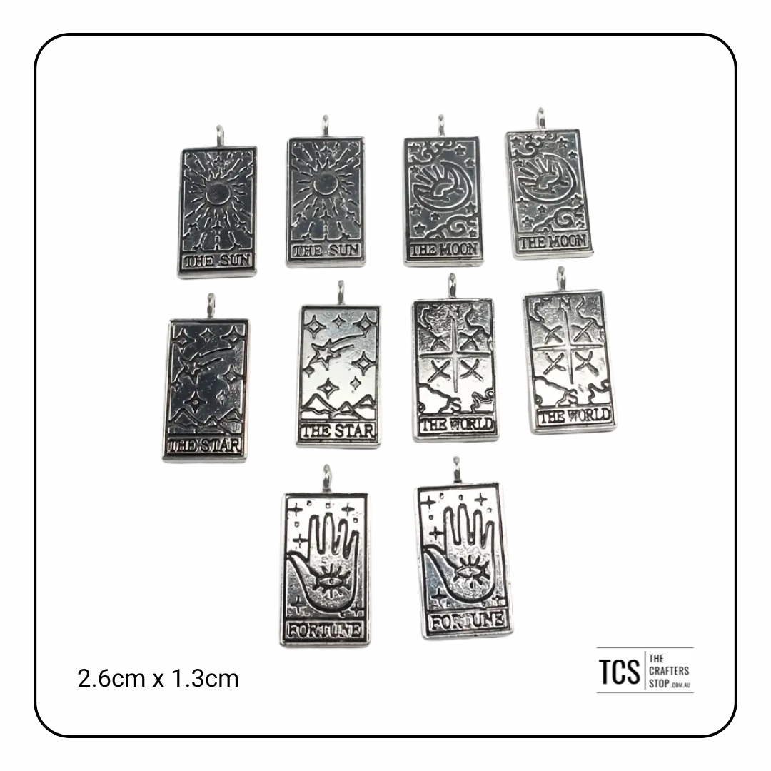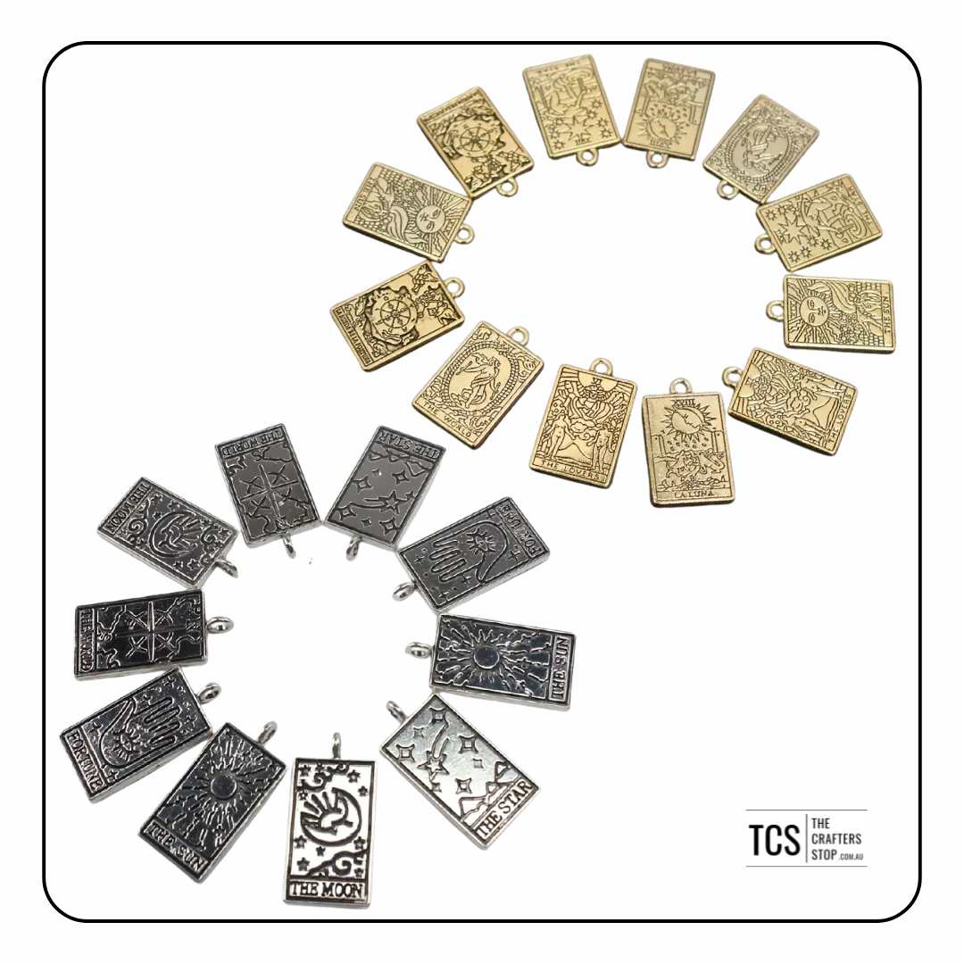 We offer delightful Metal Tarot Charms that are perfect for anyone passionate about tarot, crystals, or mystical arts. Some people believe that the history of tarot cards is filled with negative energy and scammers, when in fact the opposite is true. Each charm has its own unique meaning; simply pull one and easily google its basics to uncover its significance. These cute charms are perfect additions to your handcrafted jewelry or spiritual collection. Explore the true essence of tarot with our charms and add a touch of magic to your creations.