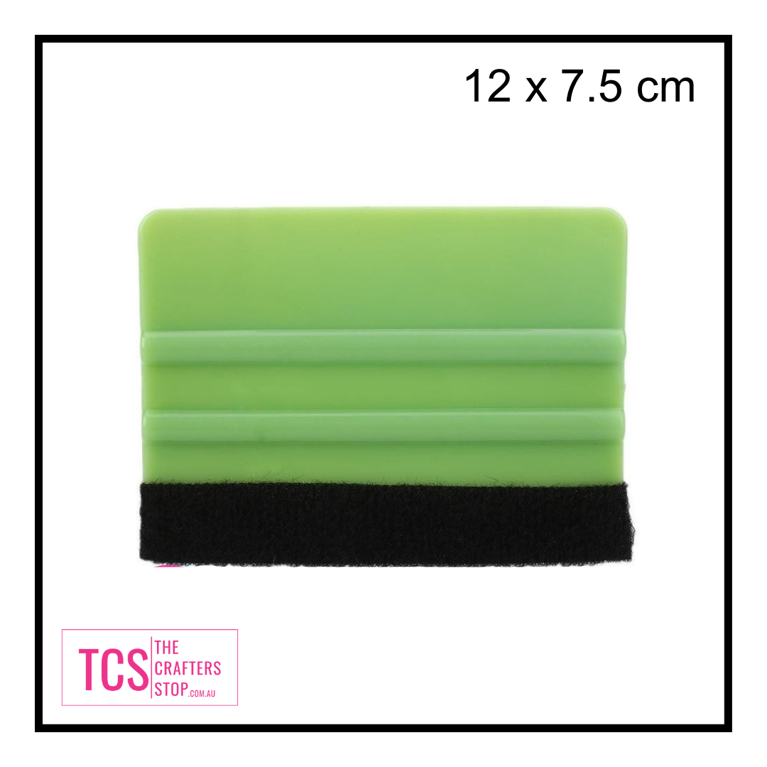 This Vinyl Application Scraper/Squeegee Tool can be used to smooth out bubbles or creases from adhesive vinyl or car film. The felt edge protects the product and makes a smoother finish.