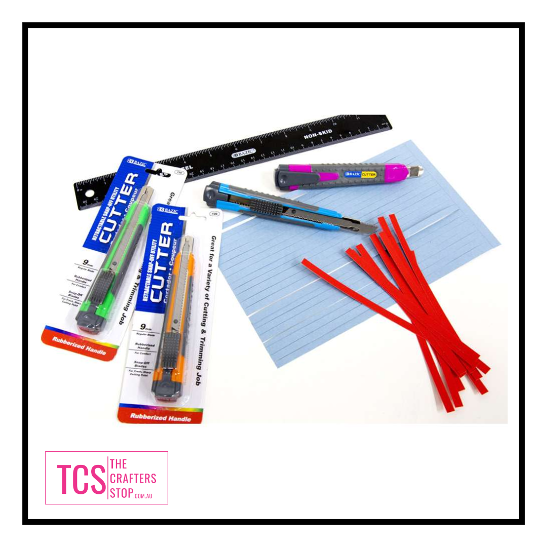 - EASY TO USE. Furnished with one 9 mm knife blade for deep cutting. Prevent blade slipping with the safety lock tab. Always keep your blade fresh by snapping off the blade for a new sharp cutting tip