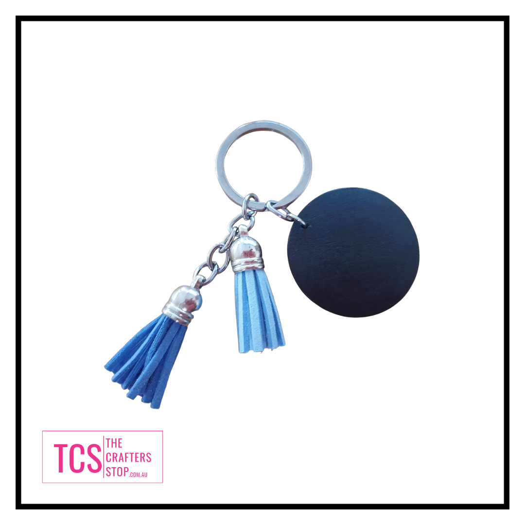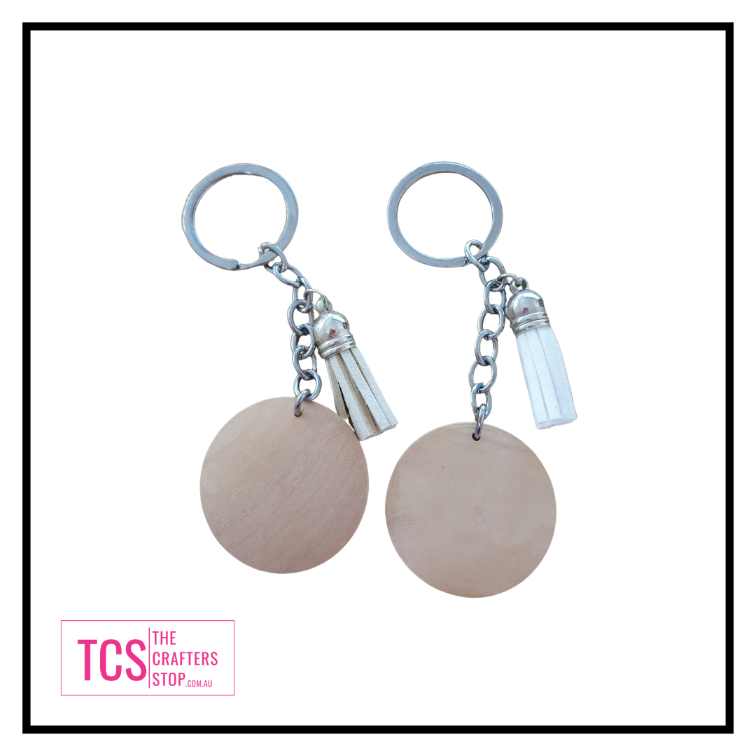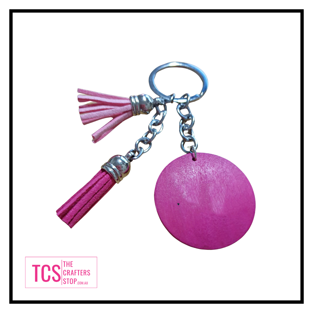 Pretty Tassel Keyrings with Wooden Disc Blank
