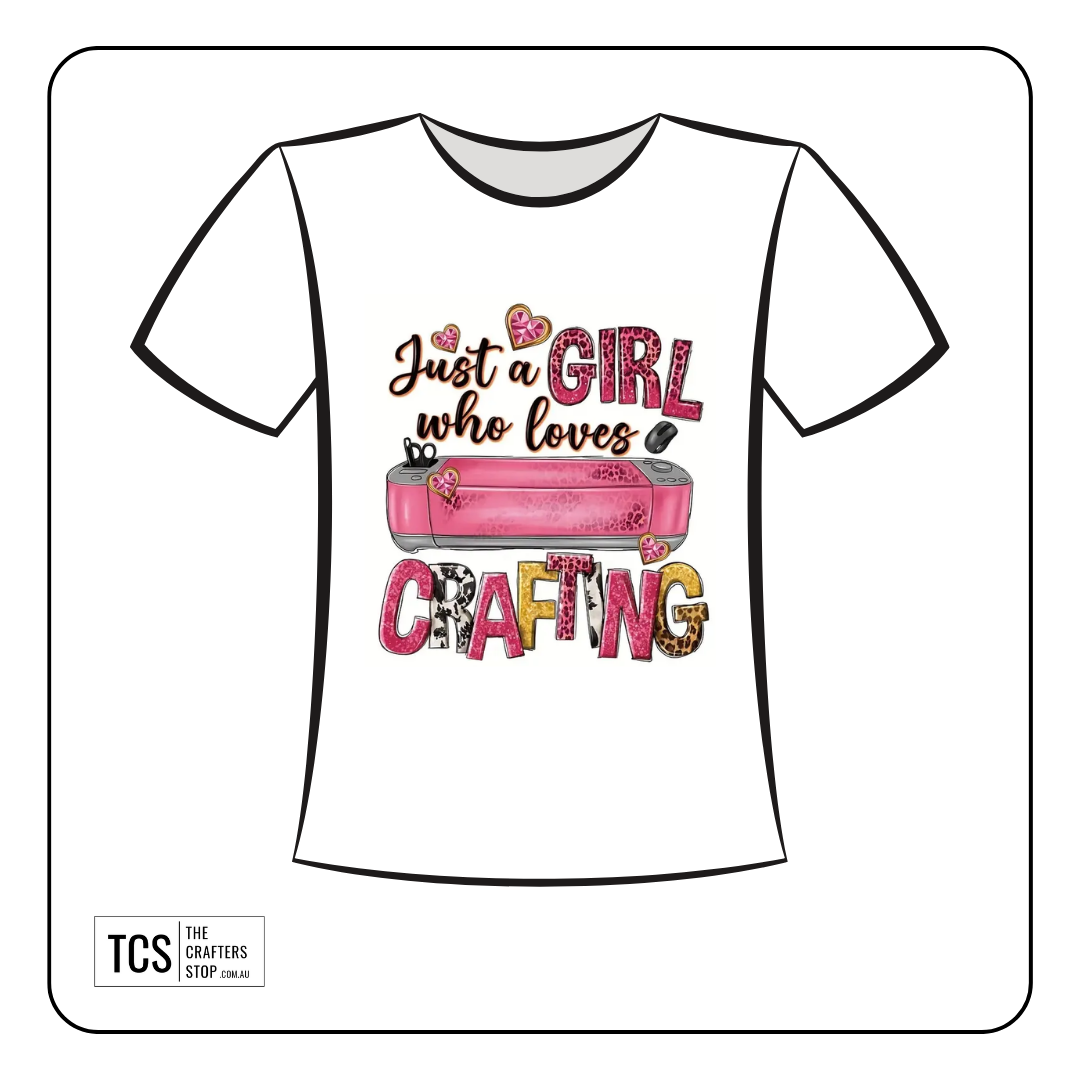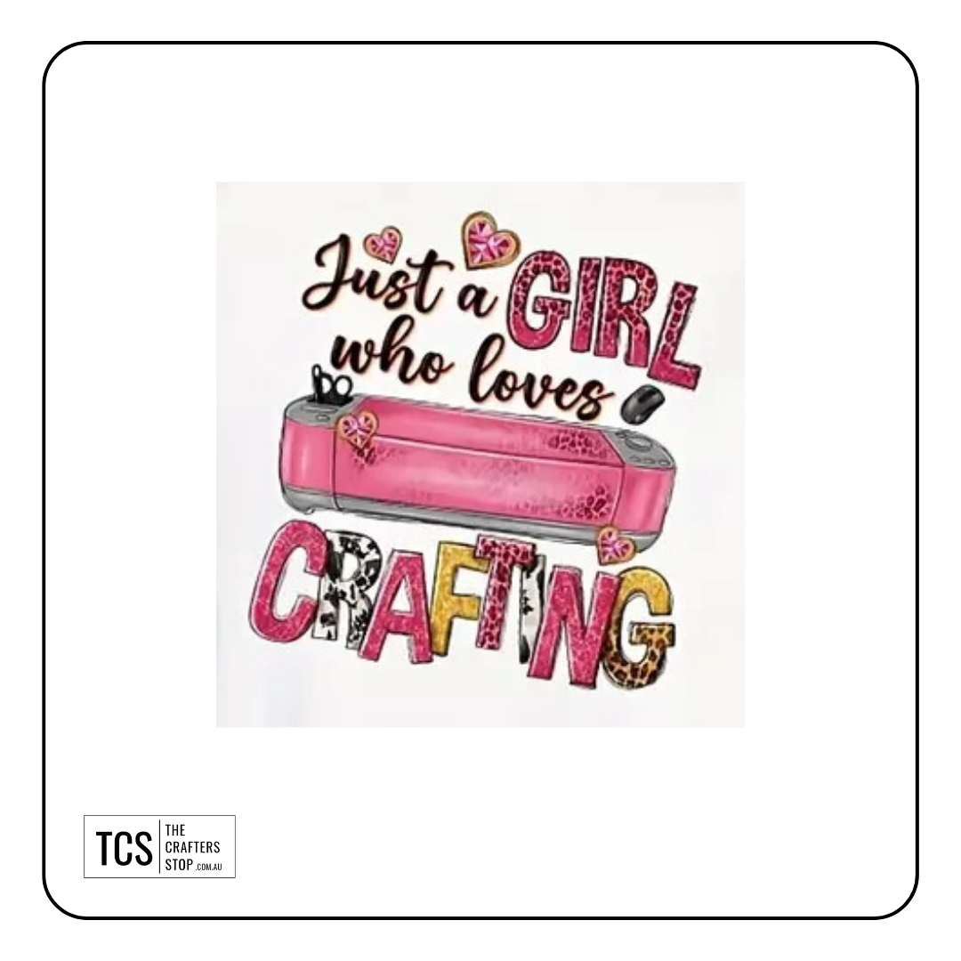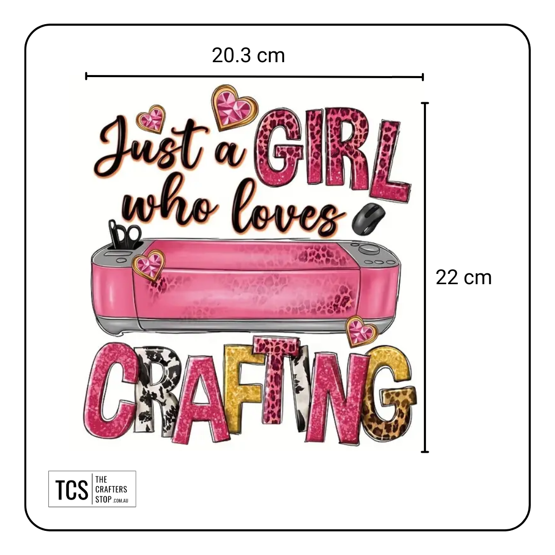 "Just a GIRL who loves CRAFTING" Ready Made DTF Iron On Transfer