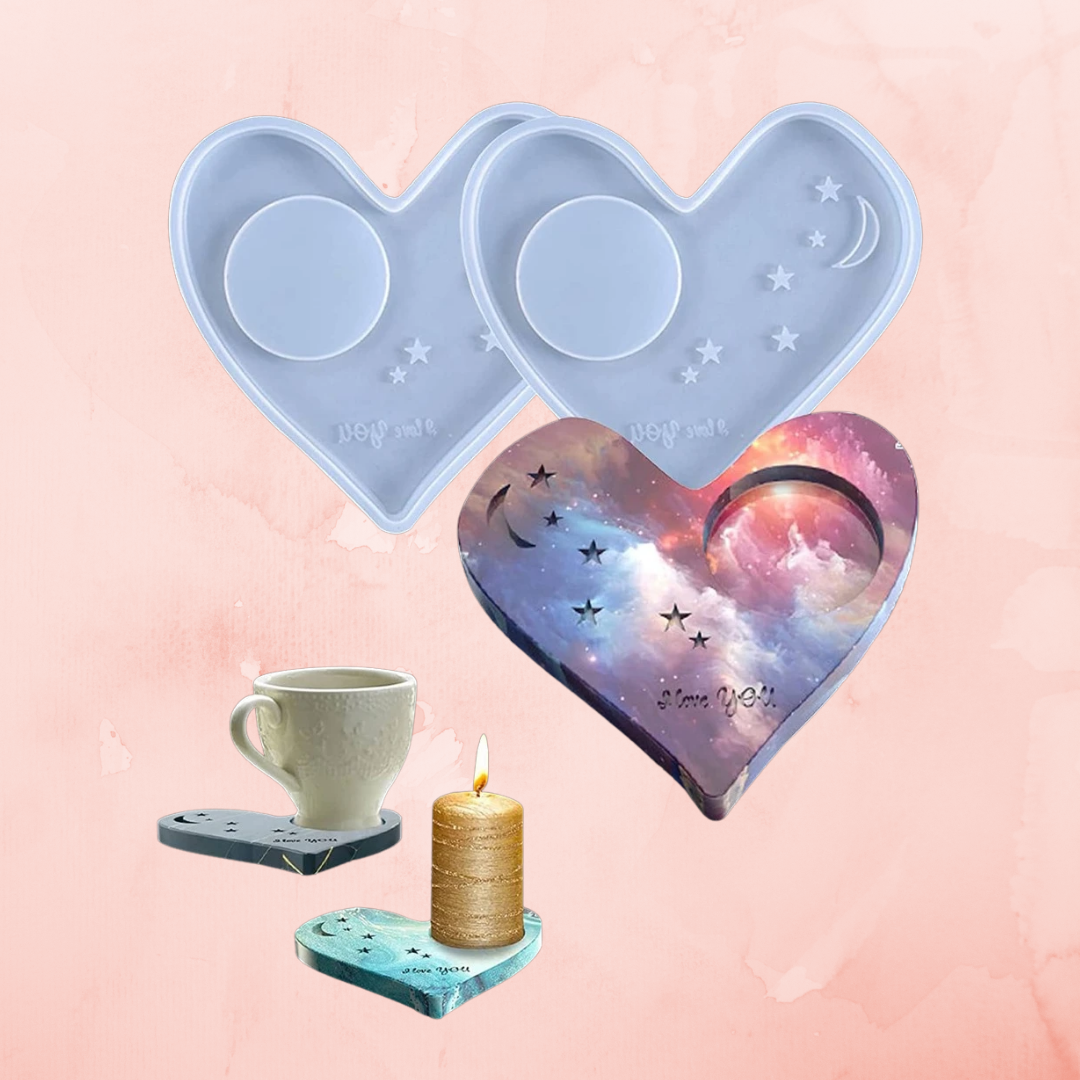 Resin Silicone Heart Moon and Stars Tray with Candle Holder Mould