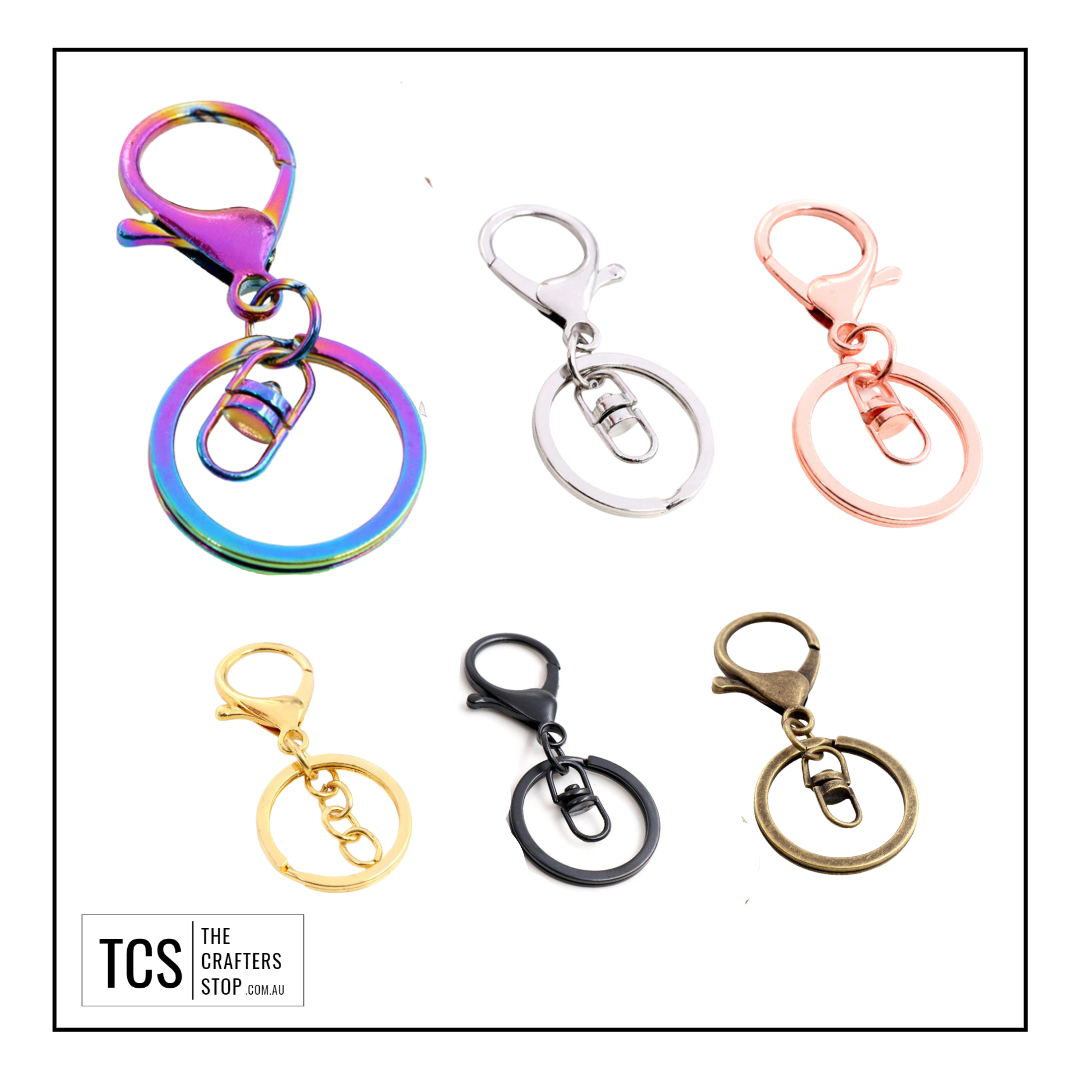 Keyring with Lobster Claw Clasps and Swivel Clasps. Make your own keyrings with whatever material you like. Add an acrylic blank and tassel for a personalised touch.
