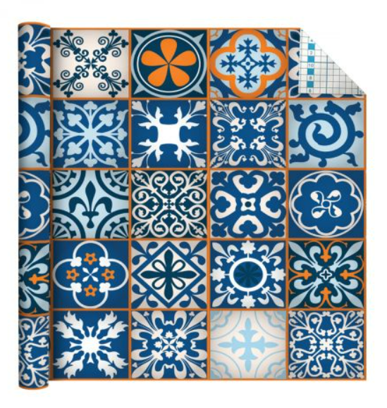 Self Adhesive Vinyl Pattern Roll - Blue Moroccan Tiles