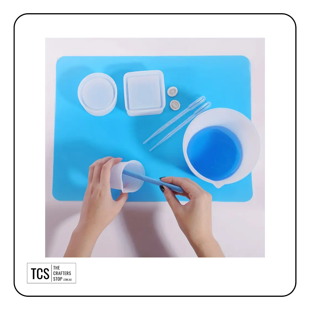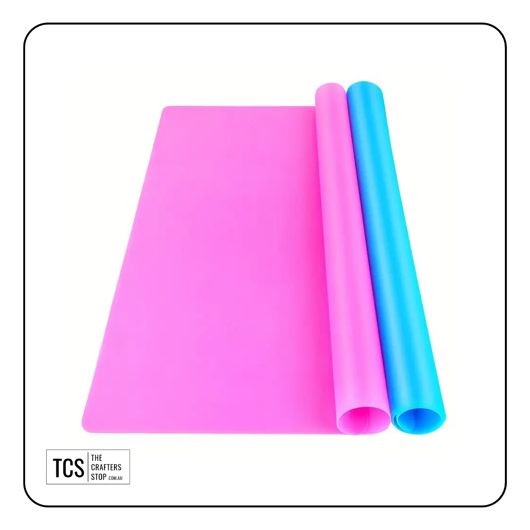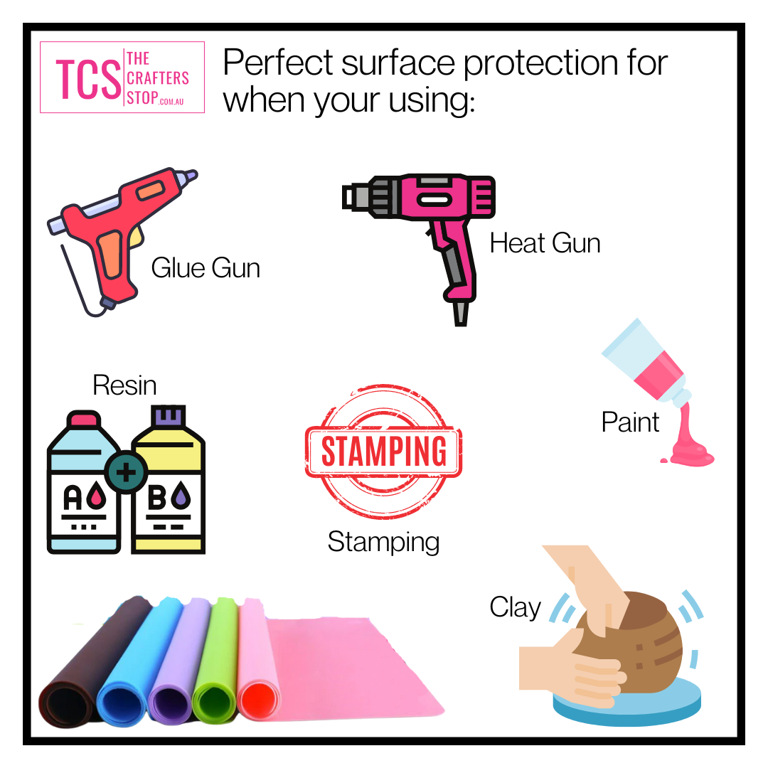 Silicone mats are perfect for protecting your surface while your using a hot glue gun, resin or painting. The hot glue/resin wont stick to the mat and paint is very easy to clean off the mat.