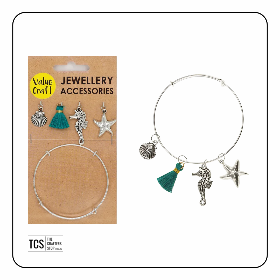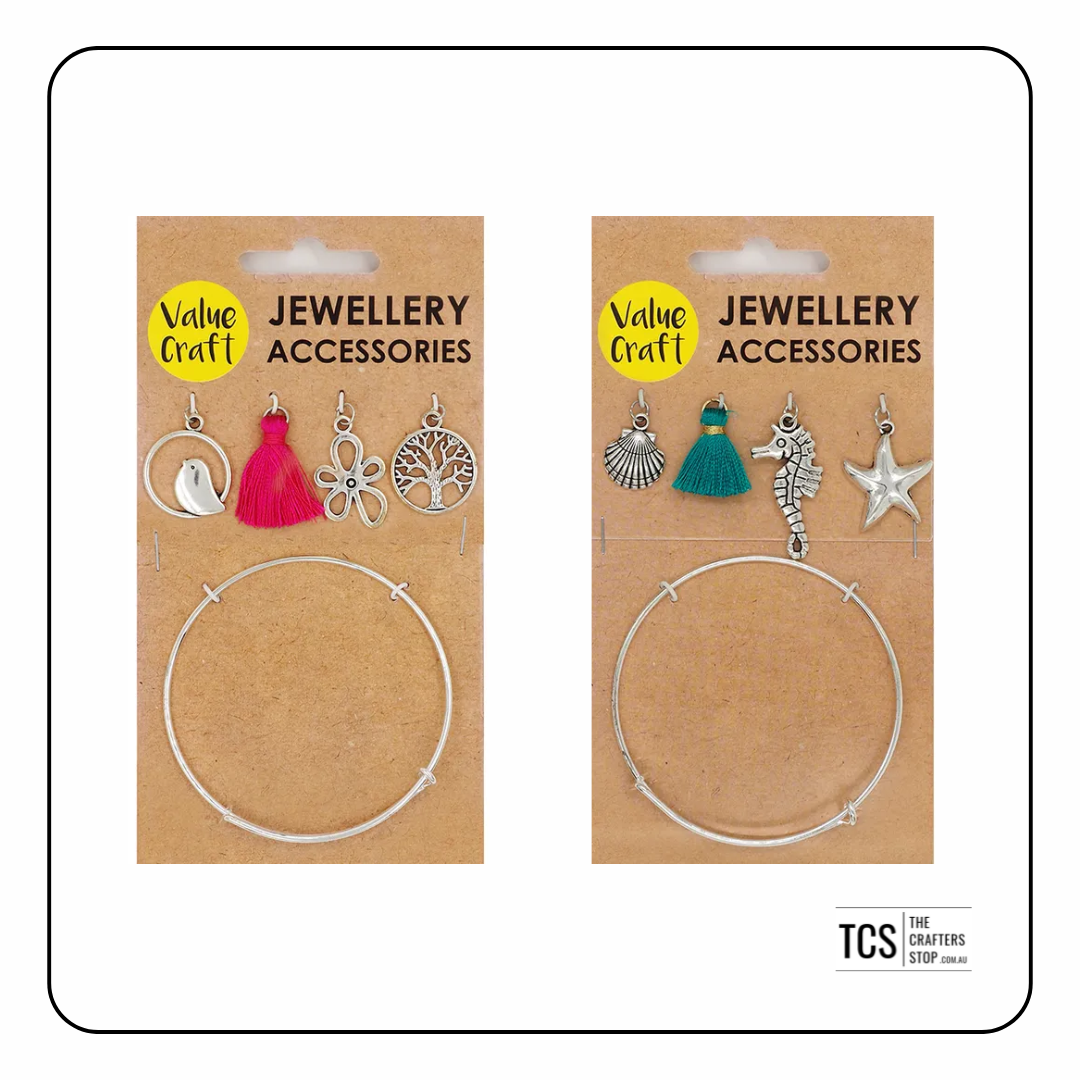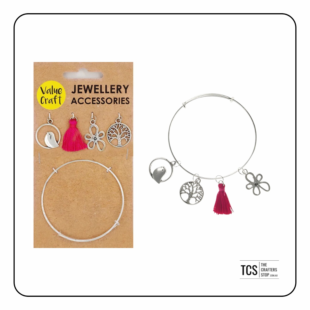 These Charm Bracelet Kits in Silver includes 5 pieces of metal alloy charms. This kit is perfect for craft enthusiasts who want to create their own unique charm bracelet.