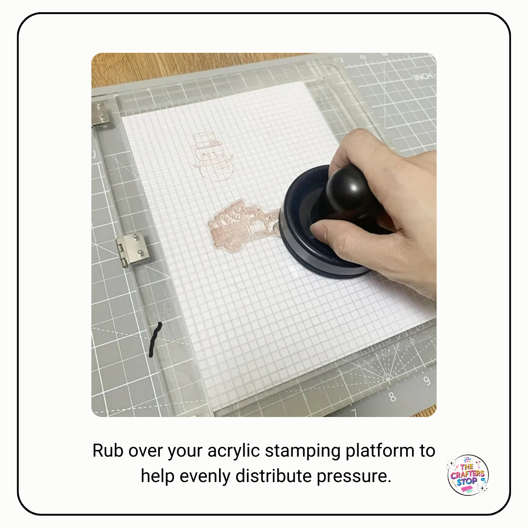Tired of wonky stamps and blurry impressions? This clever little helper ensures perfectly even pressure every single time. Simply glide it across your stamping platform or acrylic blocks and watch crisp, professional results appear like magic. Built tough from quality materials, it'll be your stamping sidekick for years to come, ready to tackle project after project without missing a beat.